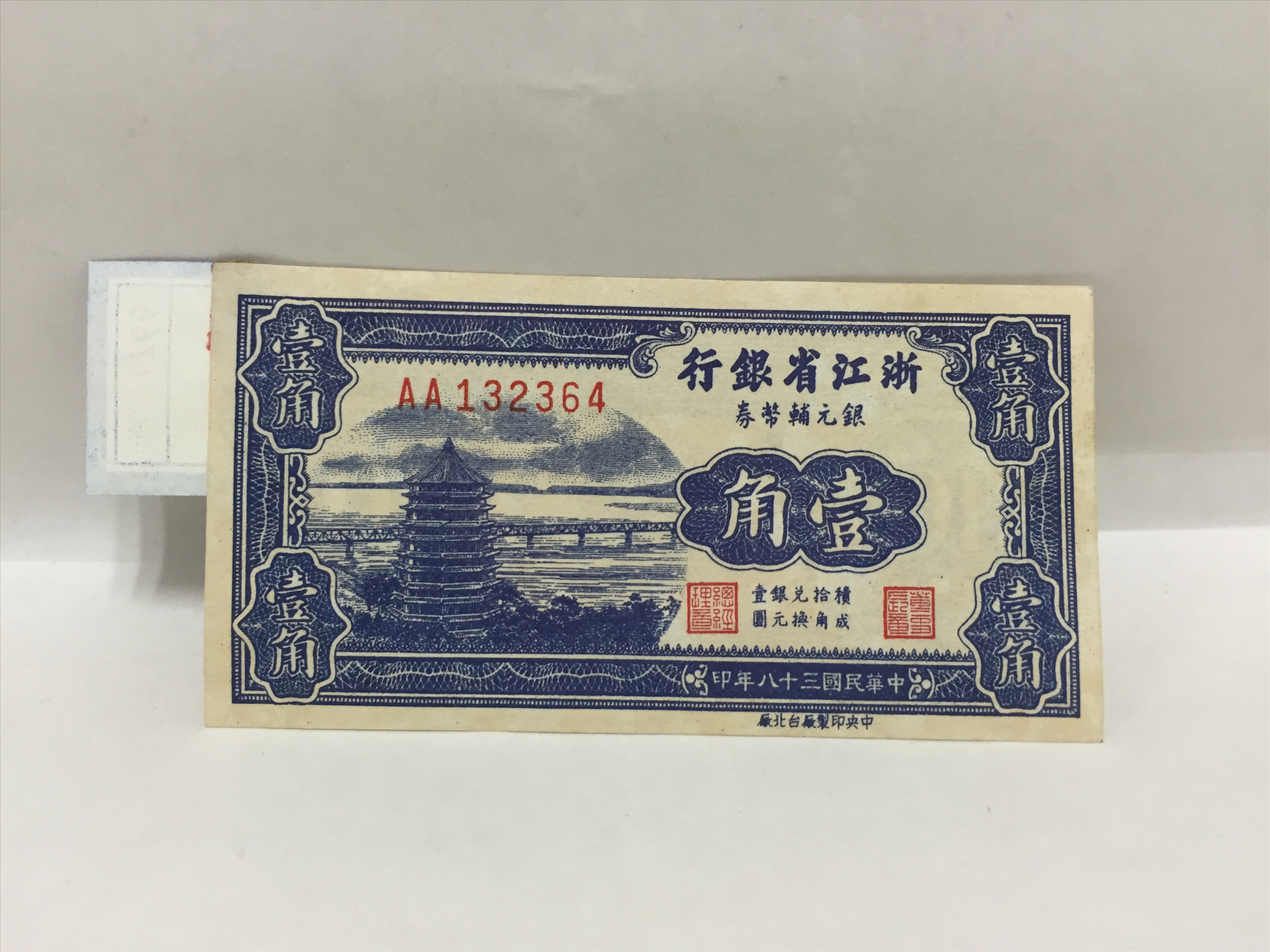 民国三十八年浙江省银行银元辅币券壹角