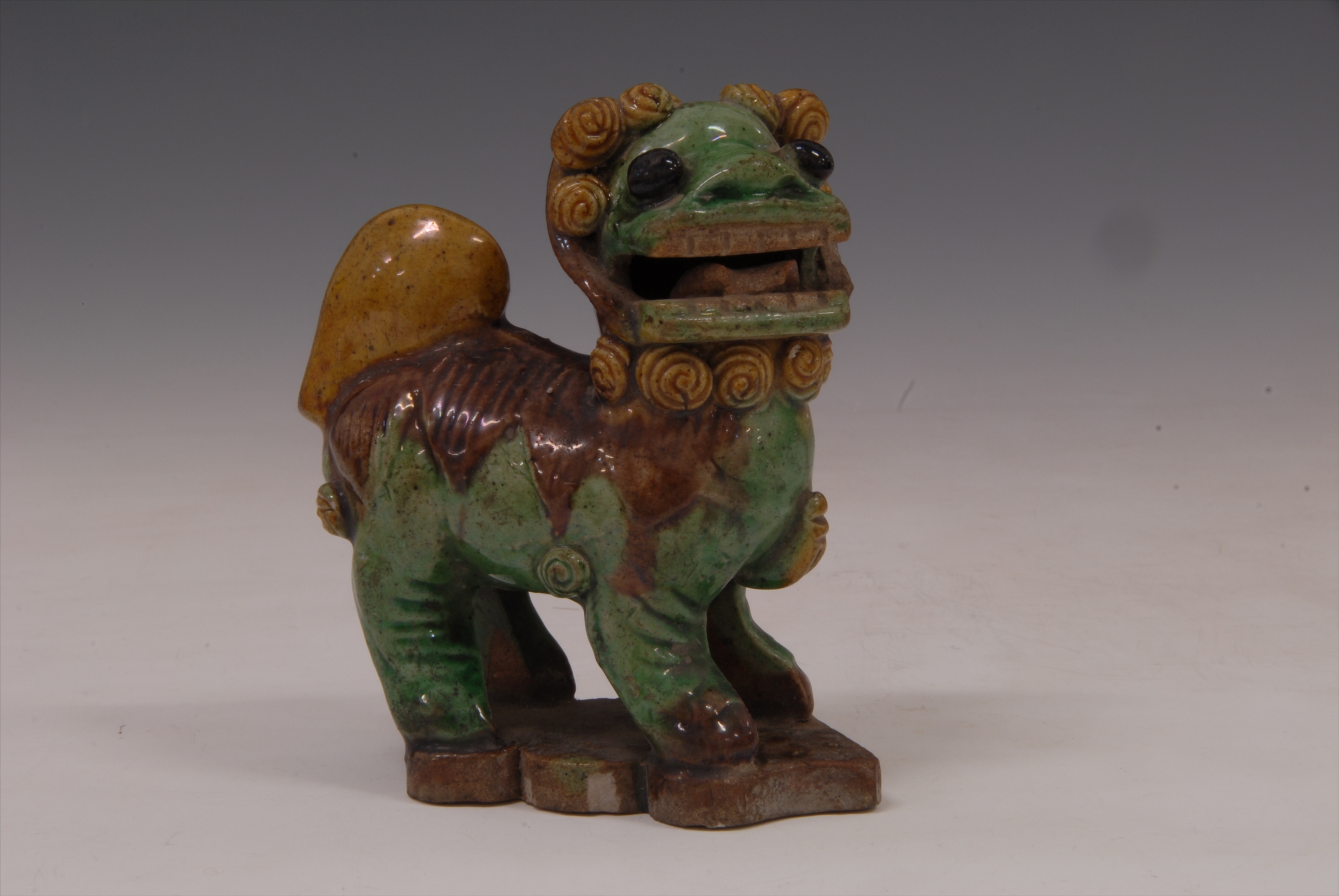 清素三彩狮形瓷摆件