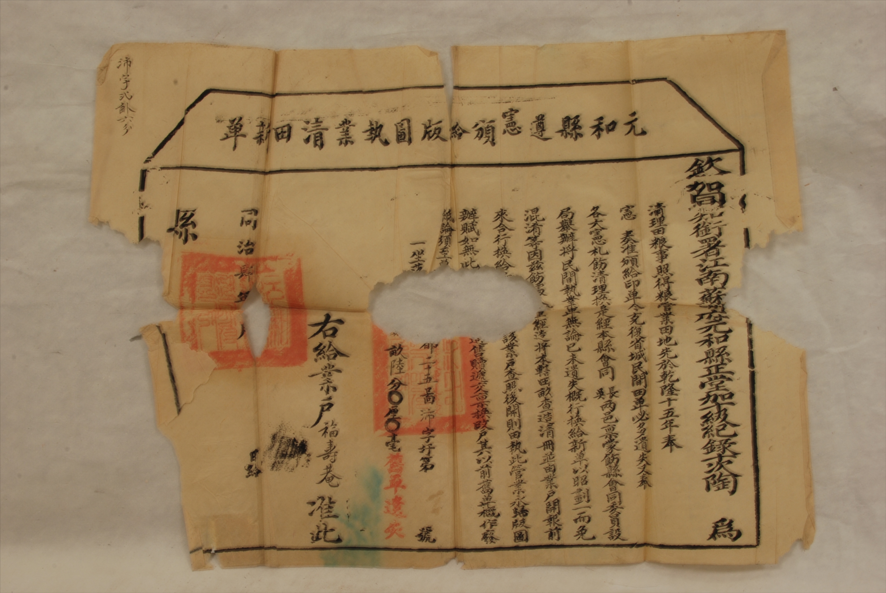 清同治四年元和县遵宪颁给版图执业清田新单