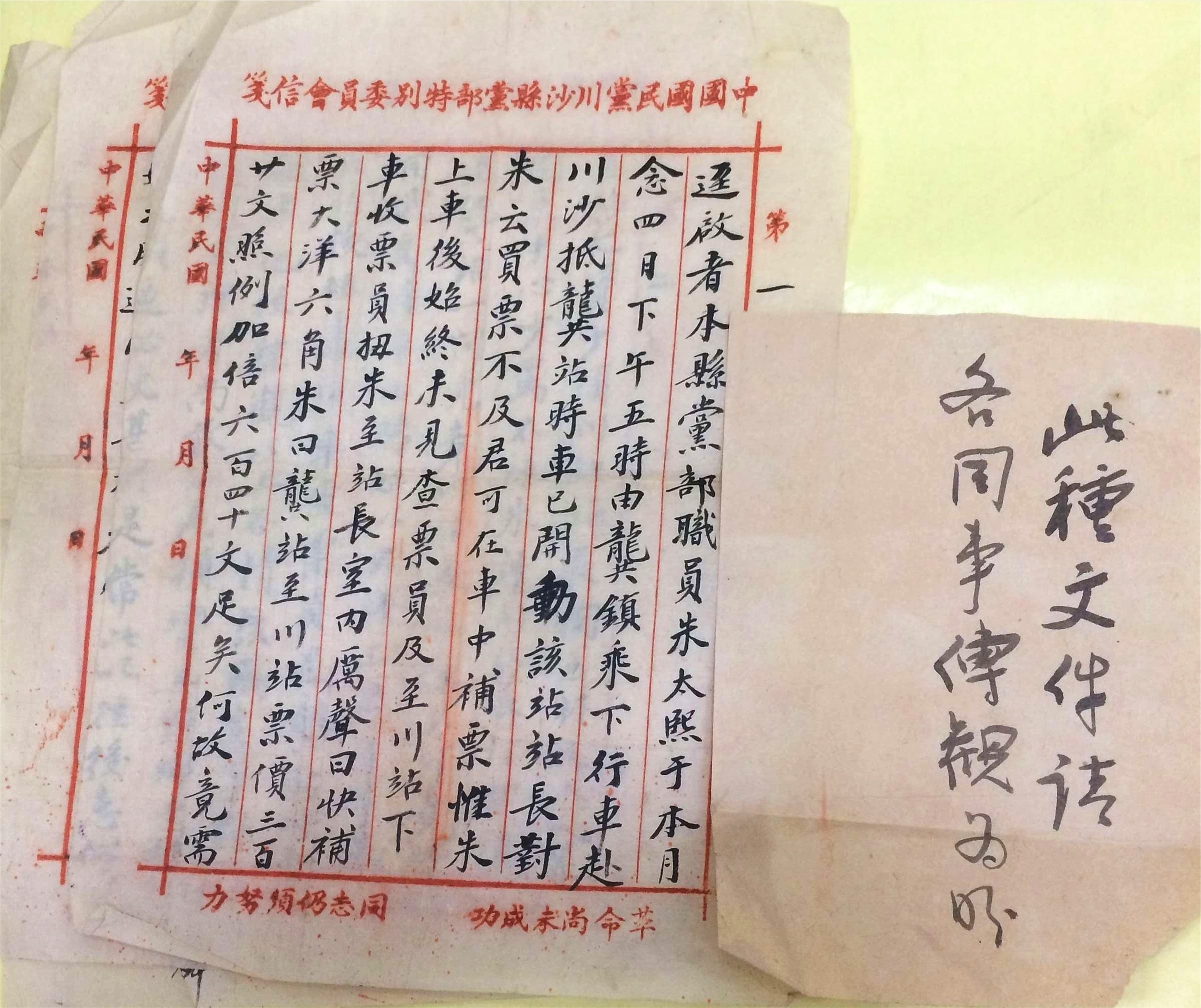 民国中国国民党川沙县党部特别委员会政上川交通公司的公函