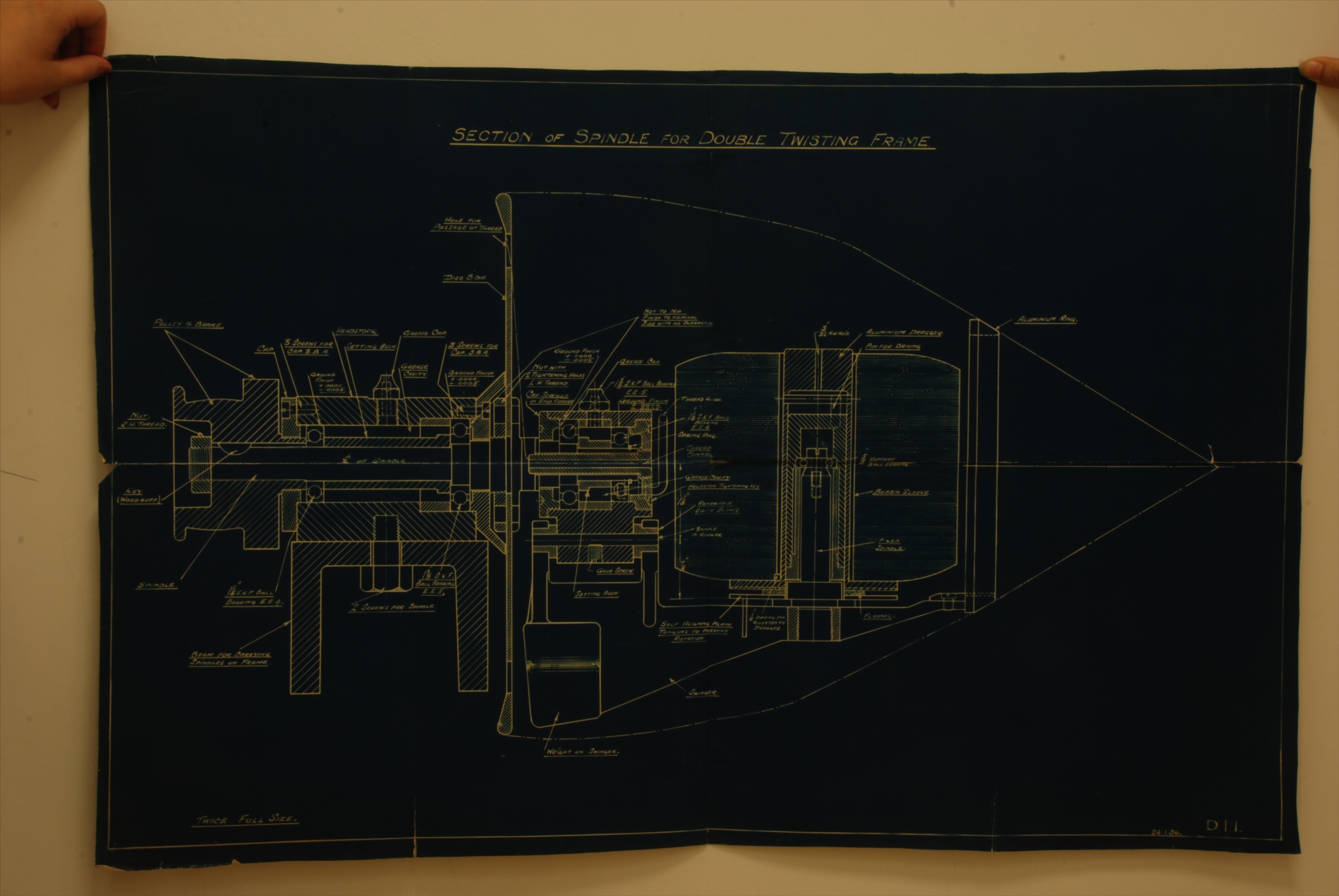 1936年1月24日SECTION OF SPINDLE FOR DOUBLE TWISTING FRAME蓝图