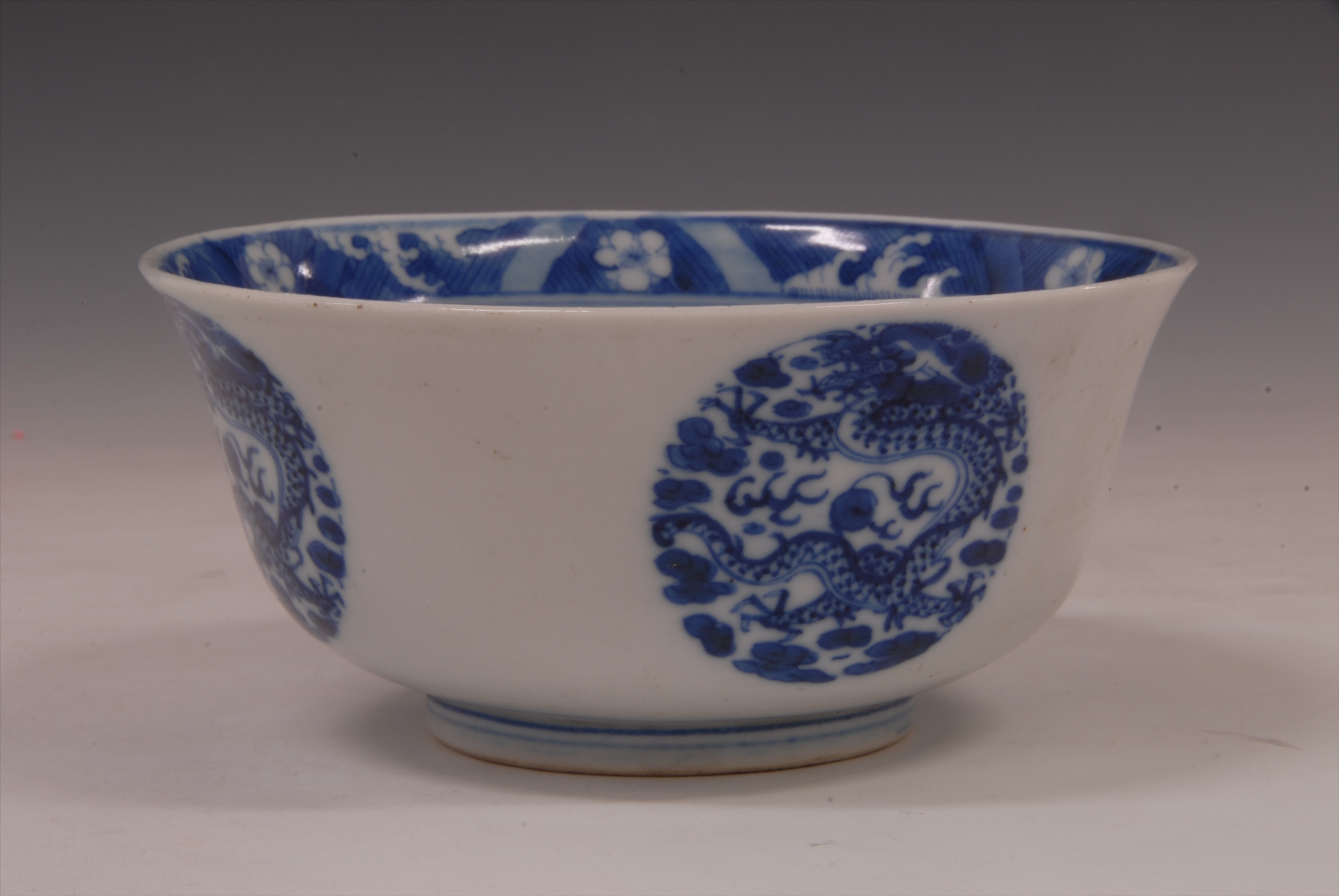 清“修到梅花馆藏”款青花团龙纹瓷碗