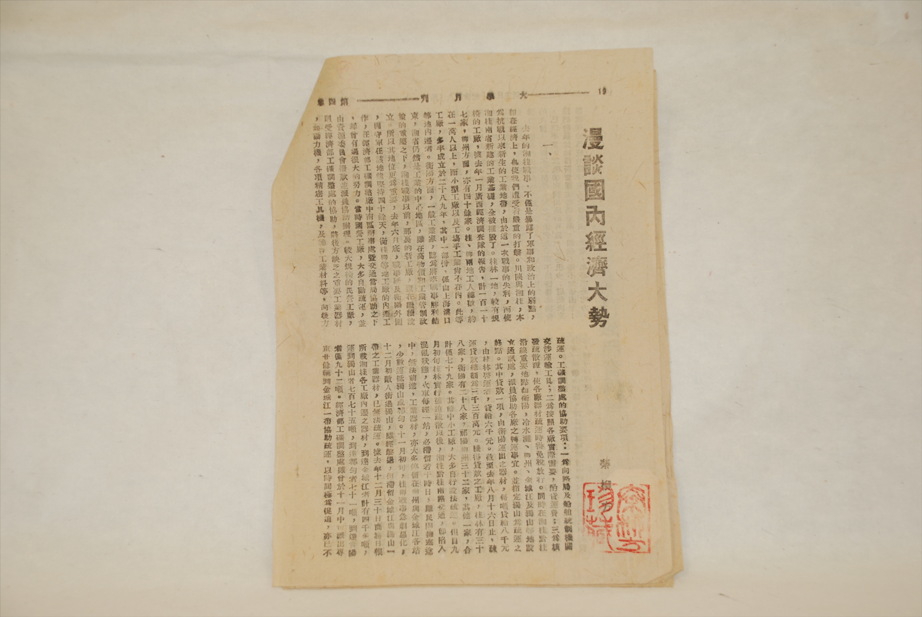 1945年4月18日秦柳方发表的《漫谈国内经济大势》