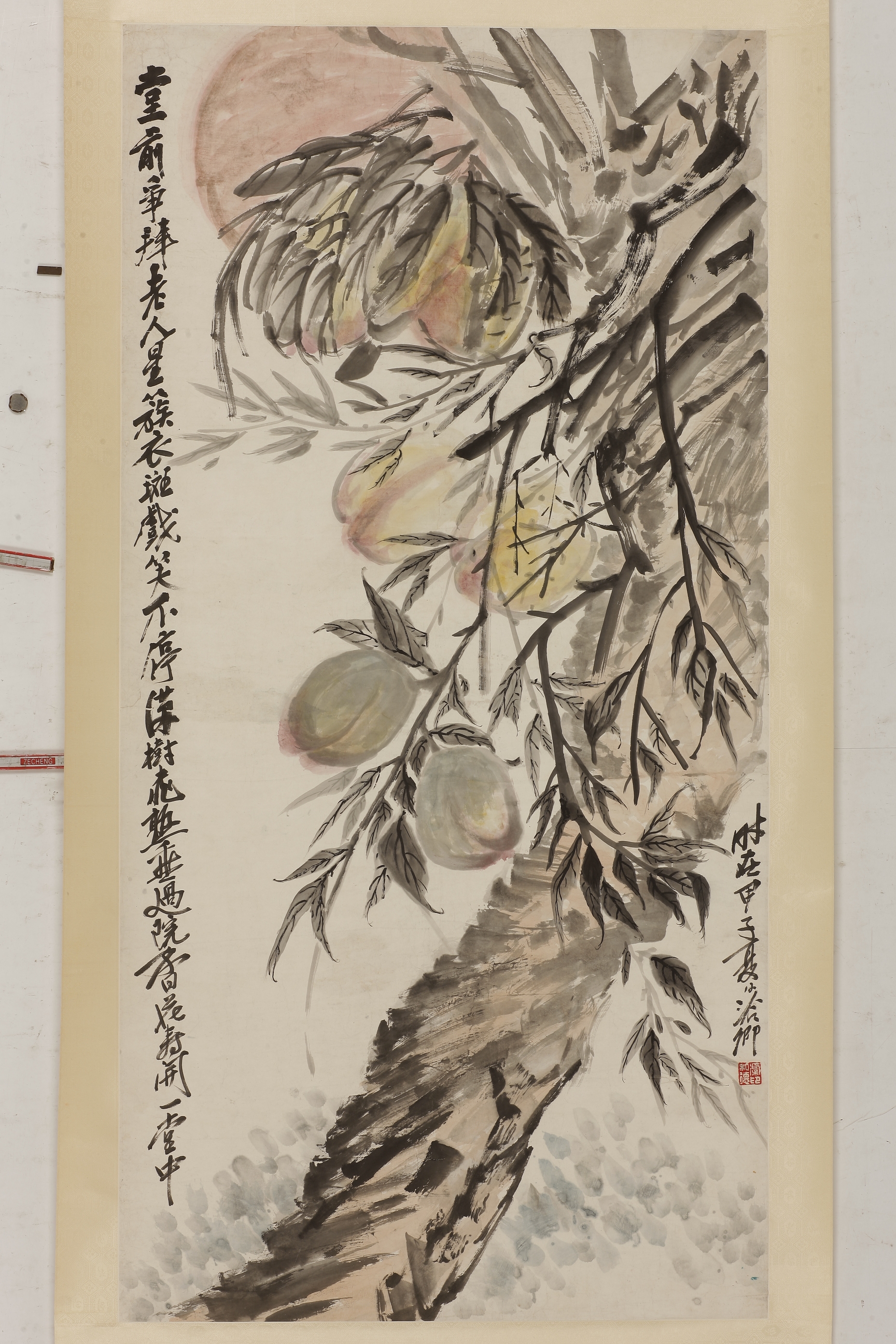 现代虞洽卿寿桃图轴