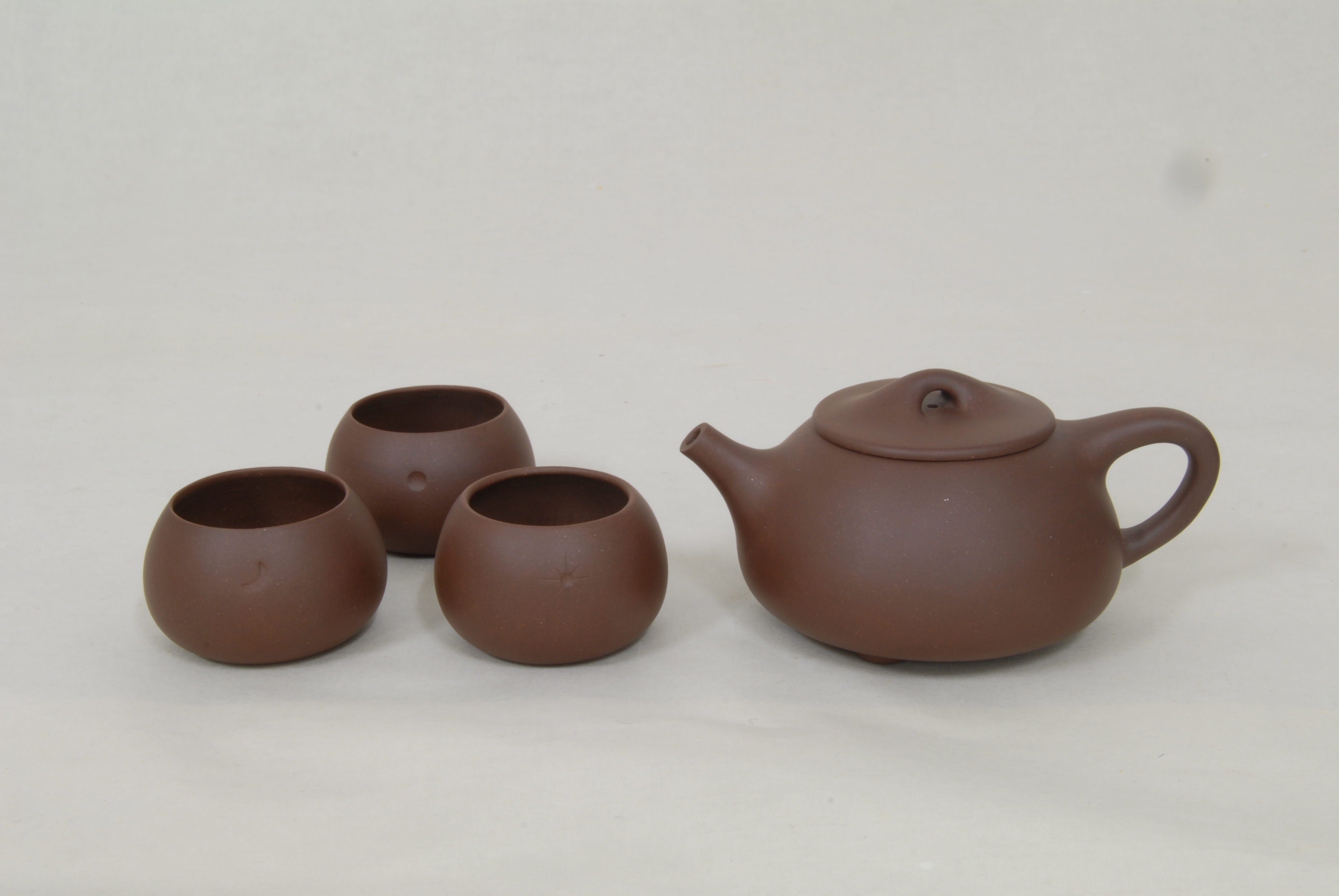 壶长14.7,宽10,高7.8;杯口径4.8,高4,腹径6.3