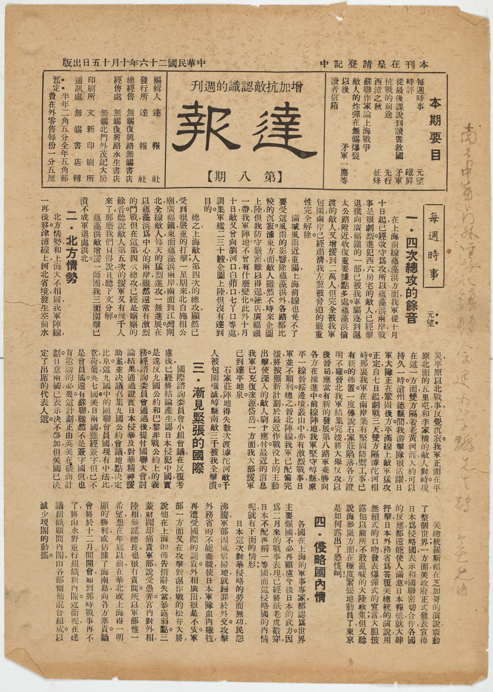 1937年10月15日《达报》第八期