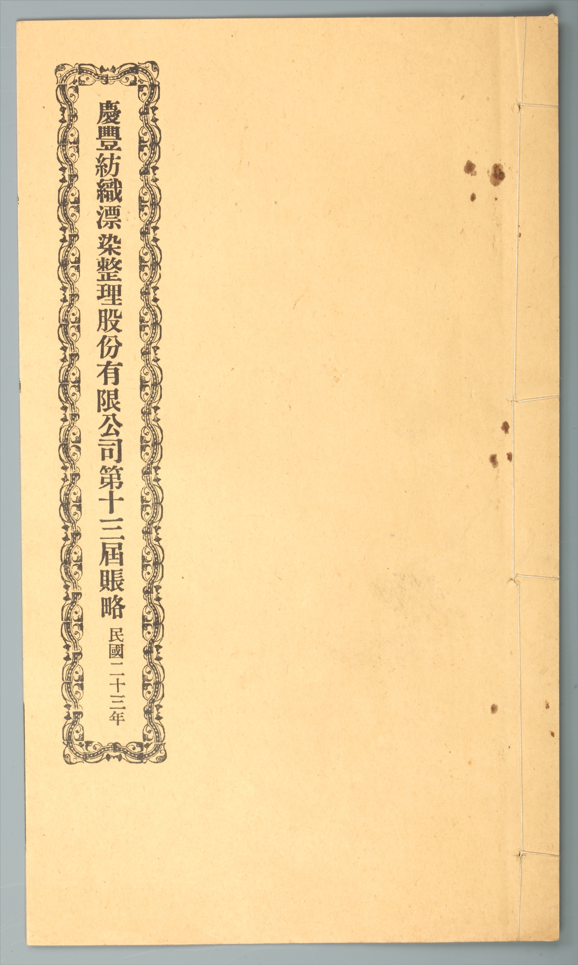 1934年庆丰纺织漂染整理股份有限公司第十三届账略