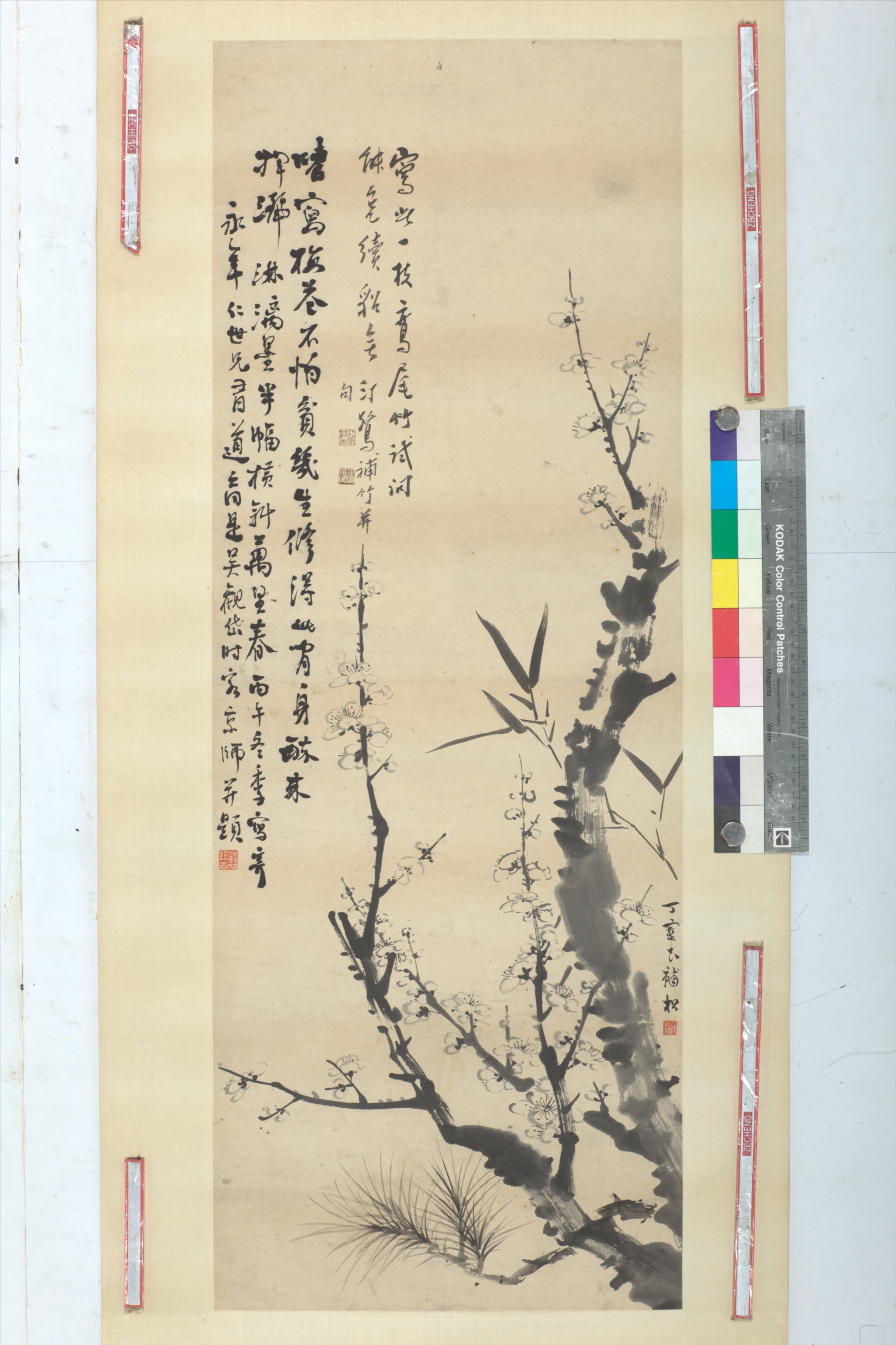 近代吴观岱、胡汀鹭、丁宝书合作松竹梅图轴