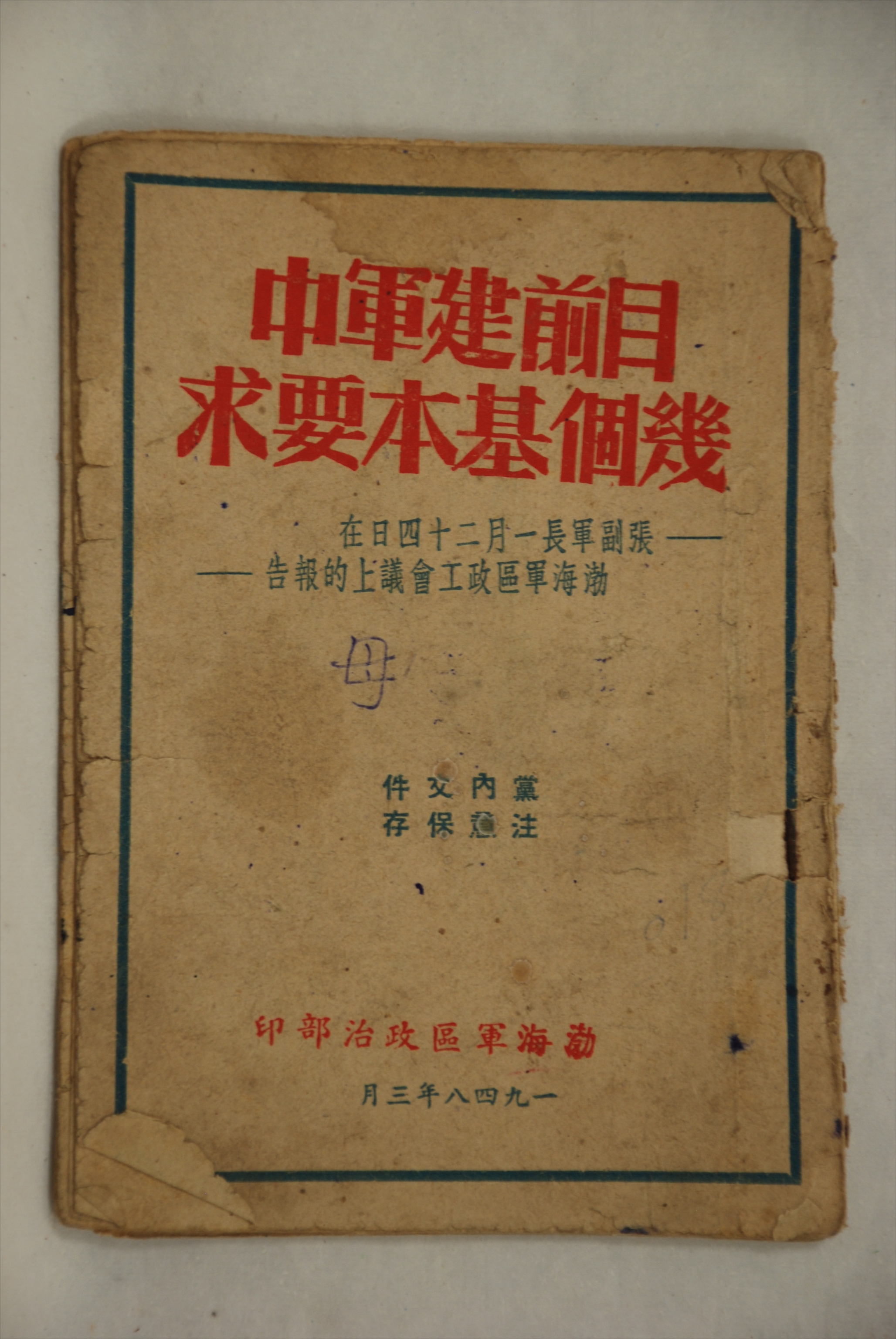 1948年3月渤海军区政治部印发的《目前建军中几个基本要求》