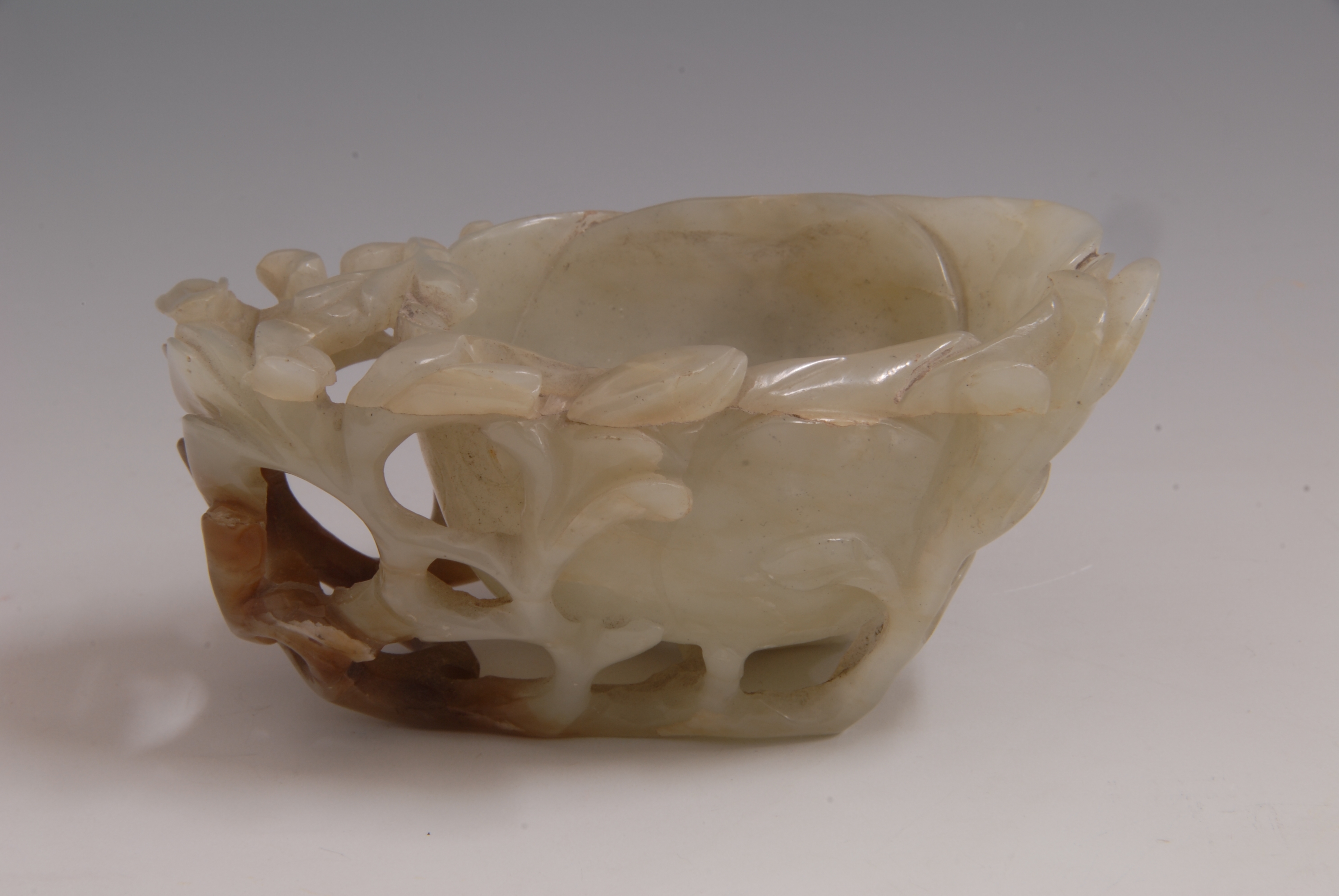 清镂雕白玉桃式杯
