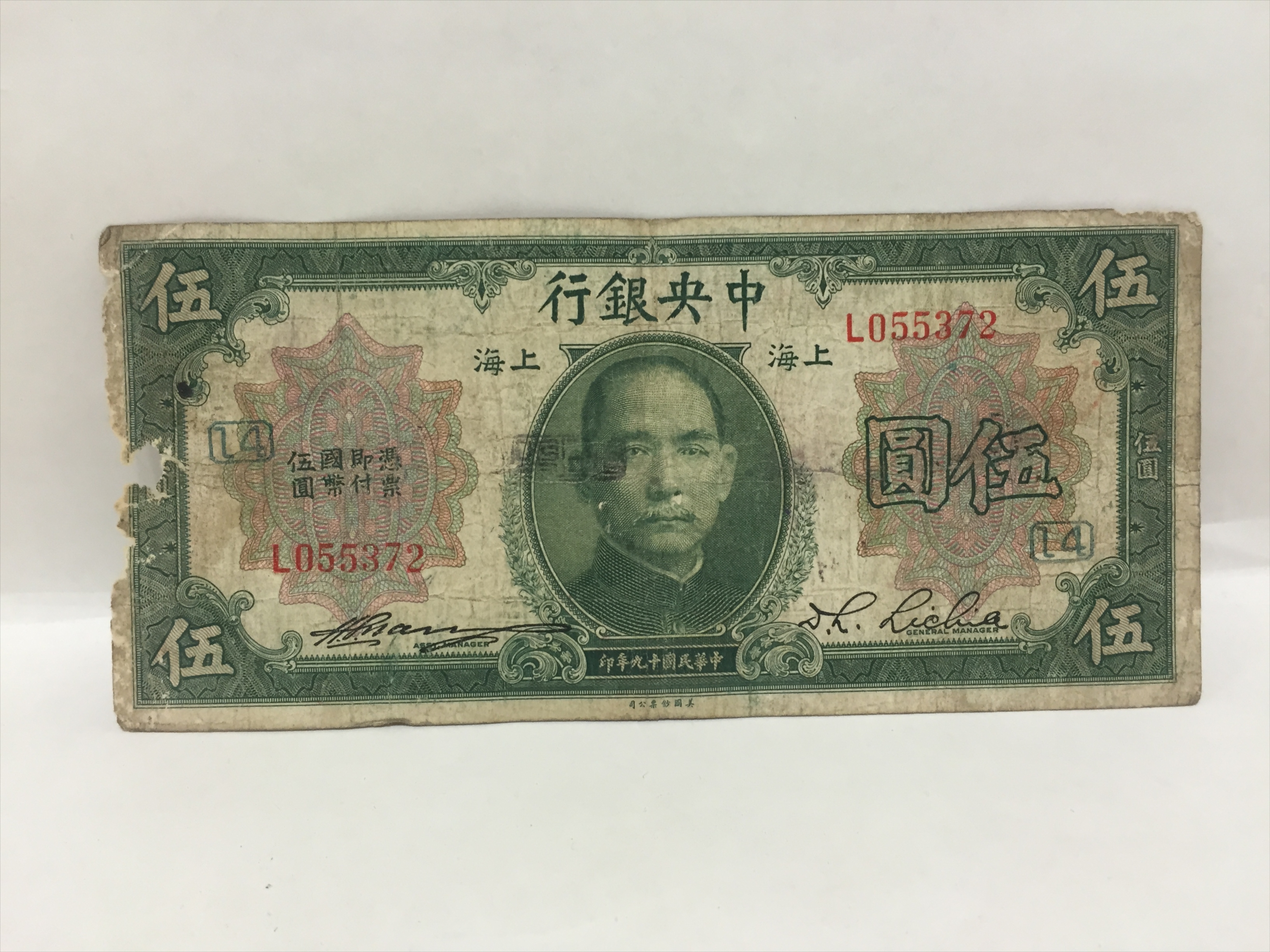 民国十九年中央银行伍圆纸币