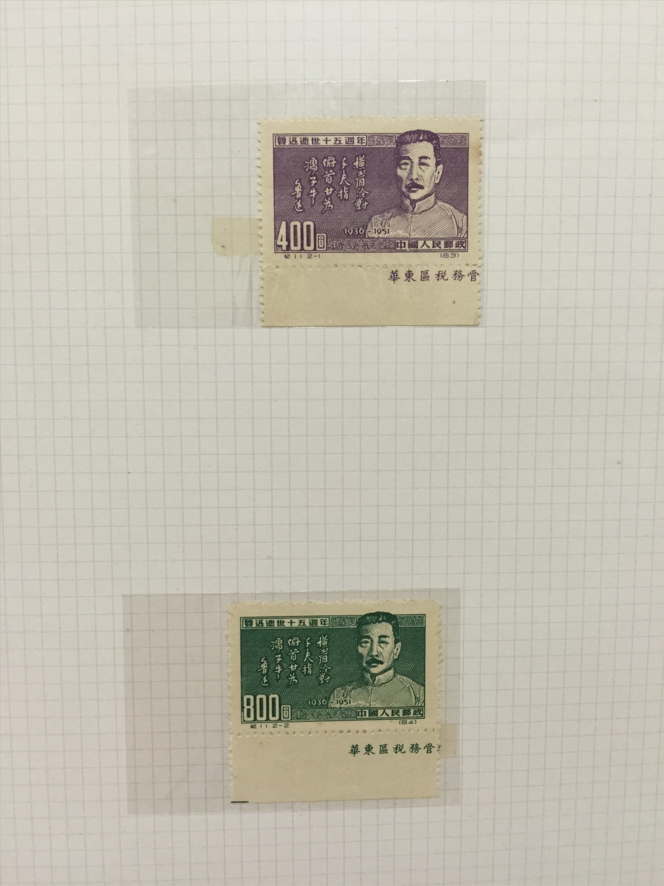 1951年鲁迅逝世十五周年邮票(原版.纪11)