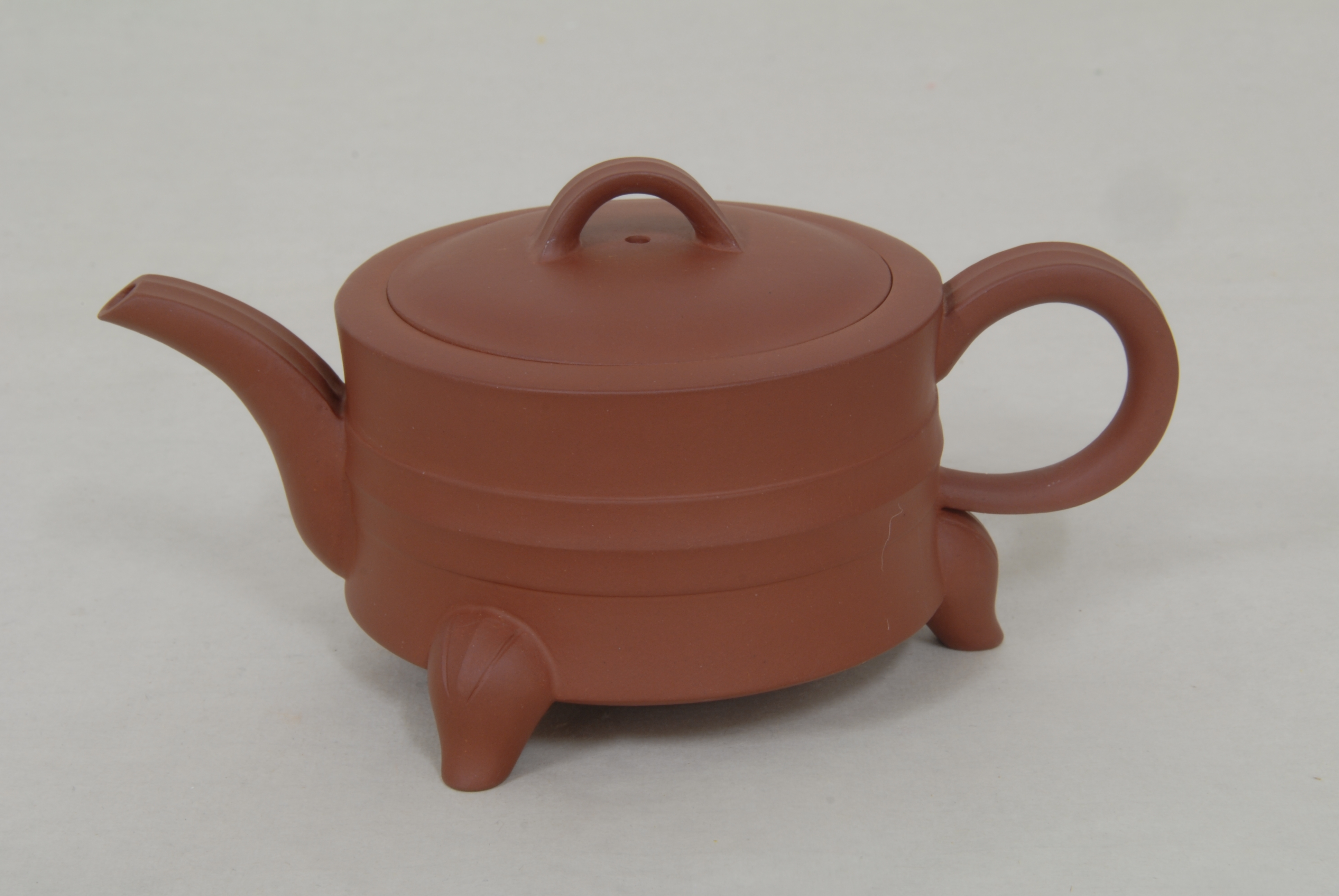现代王桂芬制紫砂三足线圆壶