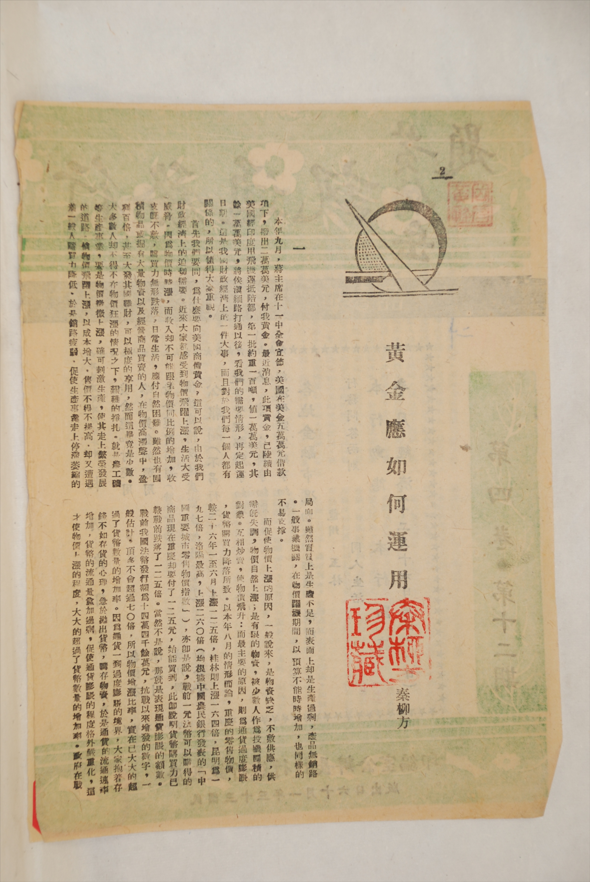1943年11月12日秦柳方发表的《黄金应如何运用》