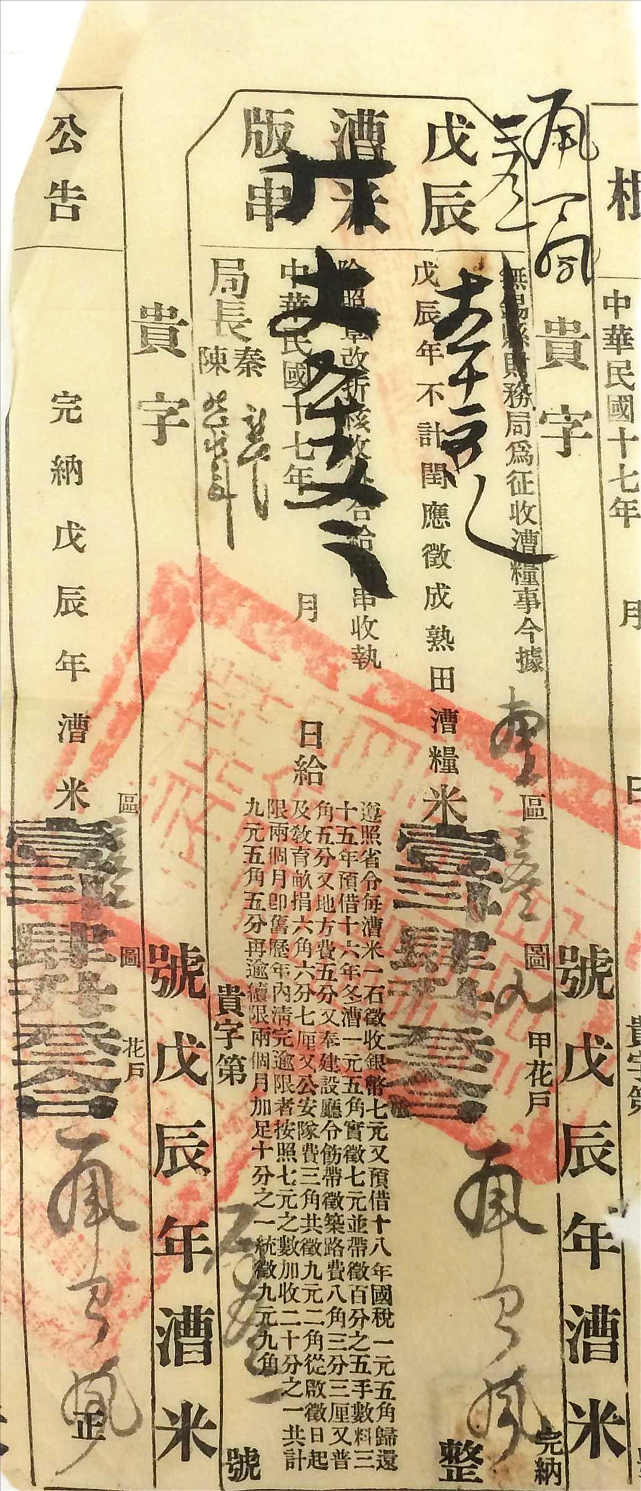 1928年无锡县财务局戊辰漕米版串