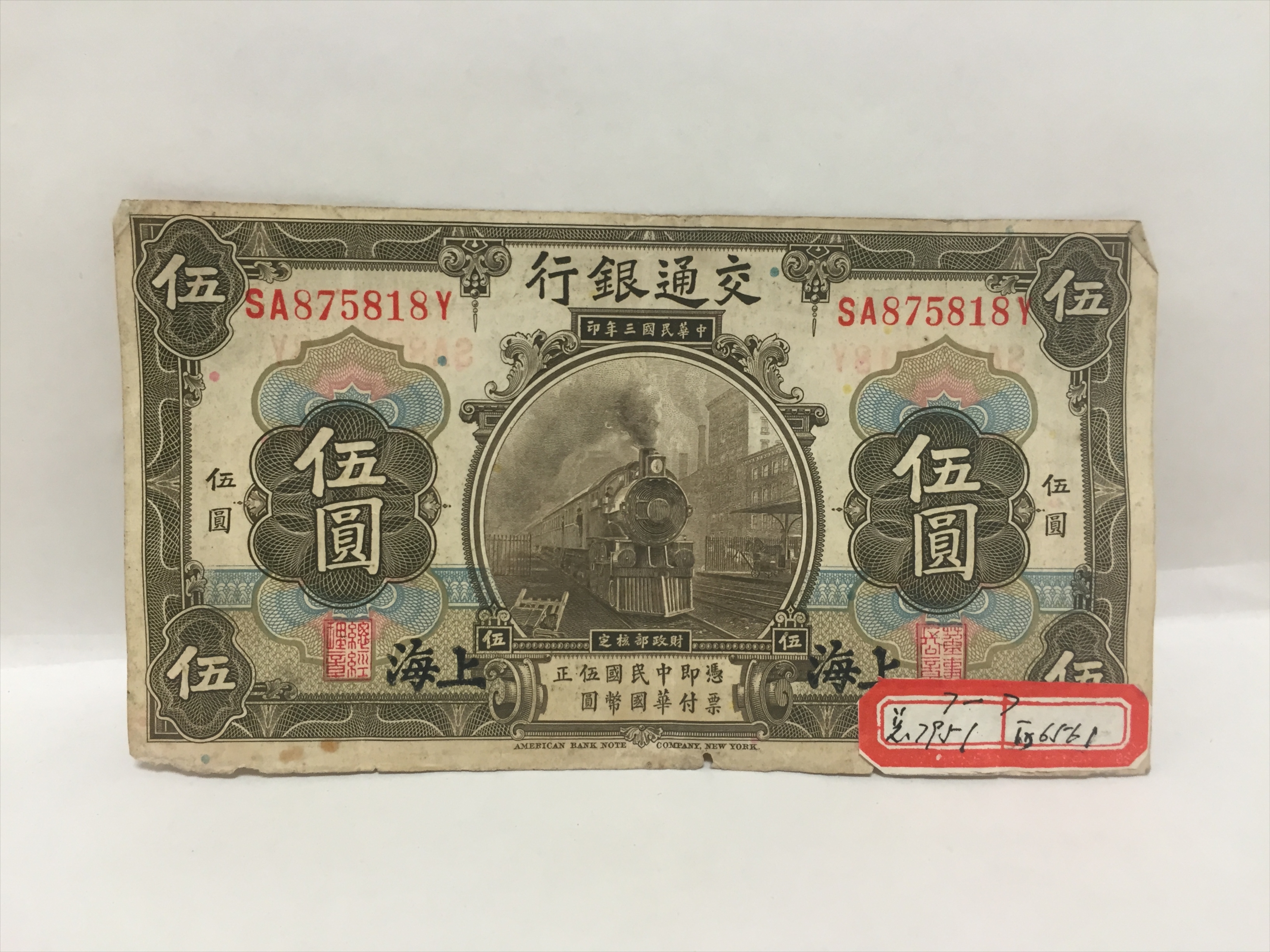 民国三年交通银行伍圆纸币
