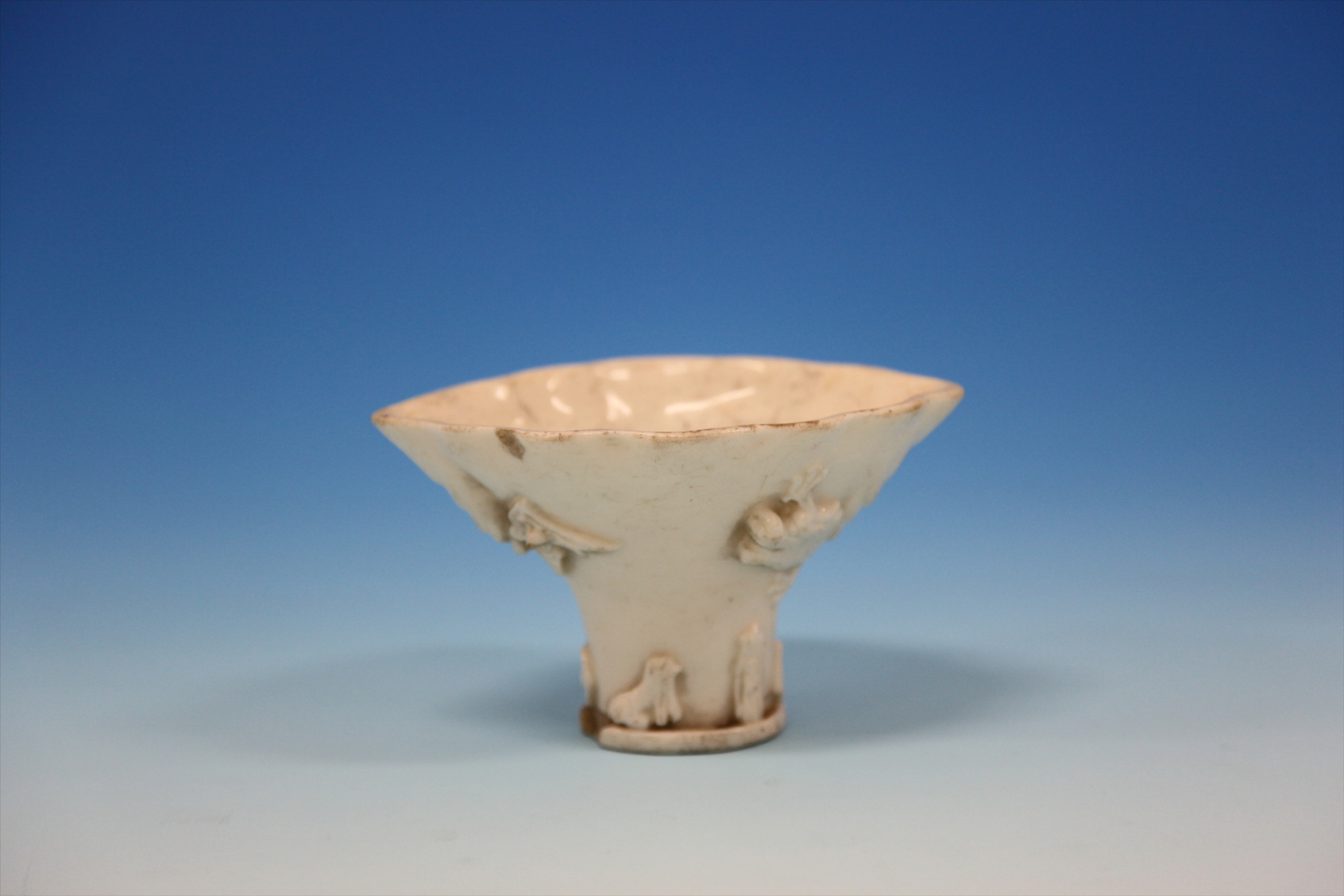 清德化窑白釉飞鹤龙鹿纹马蹄形瓷杯