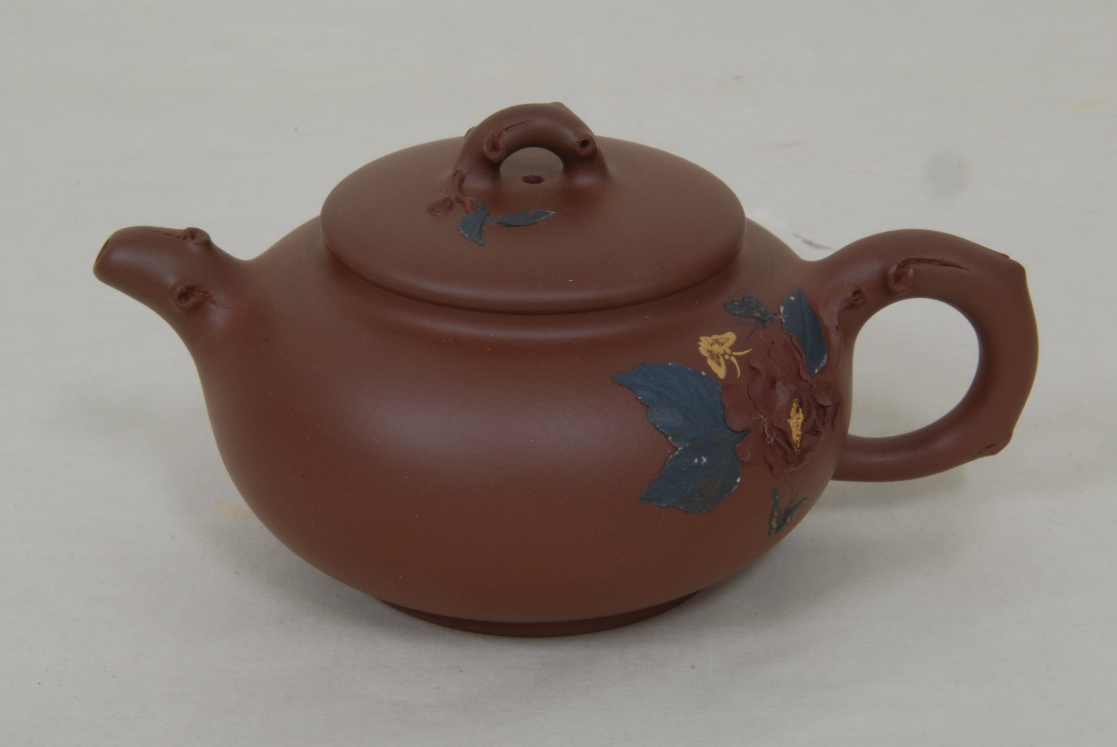 现代吴菊芳制紫砂牡丹壶
