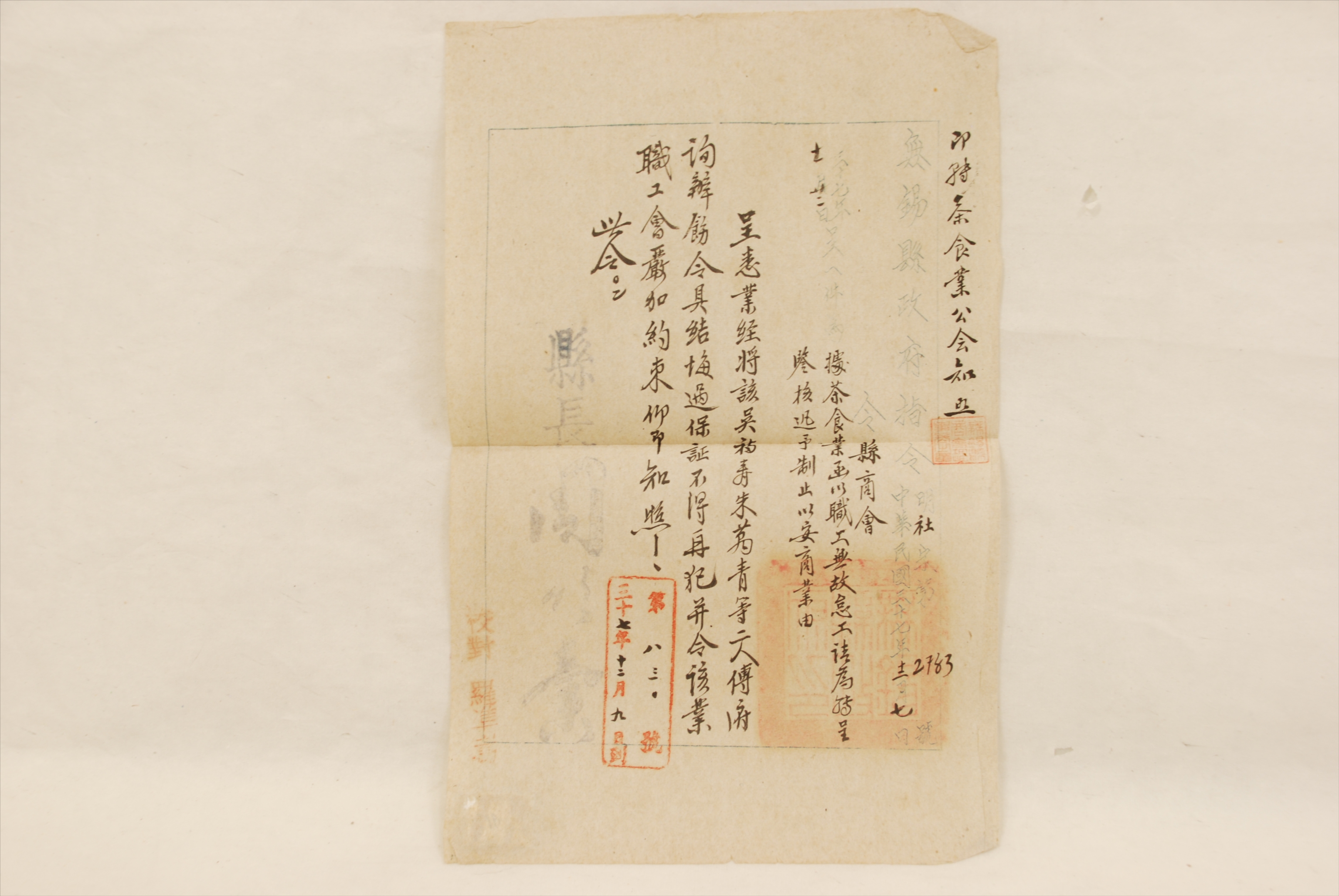 1948年12月9日无锡县政府指令