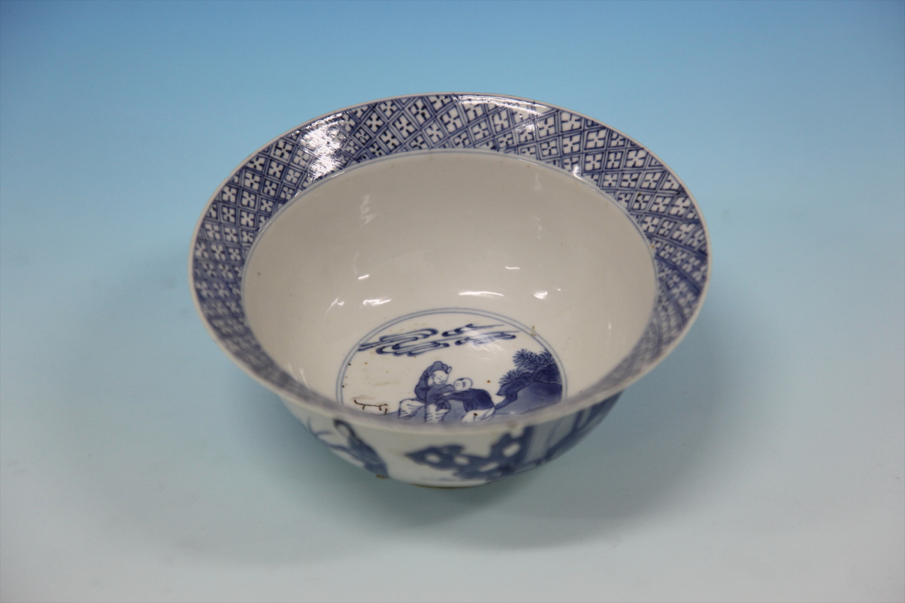 清“大清康熙年制”款青花人物纹侈口瓷碗