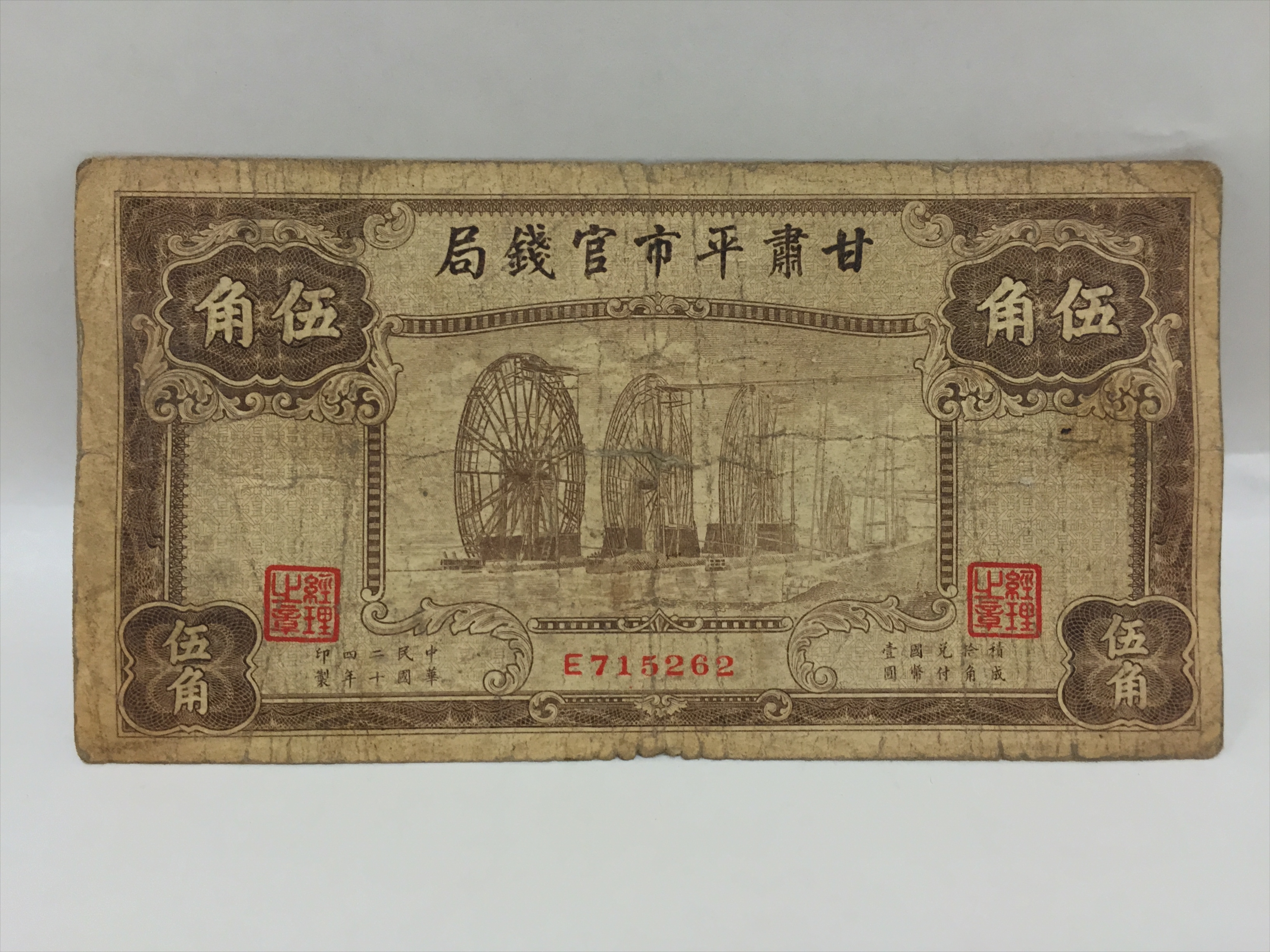 民国二十四年甘肃平市官钱局伍角纸币