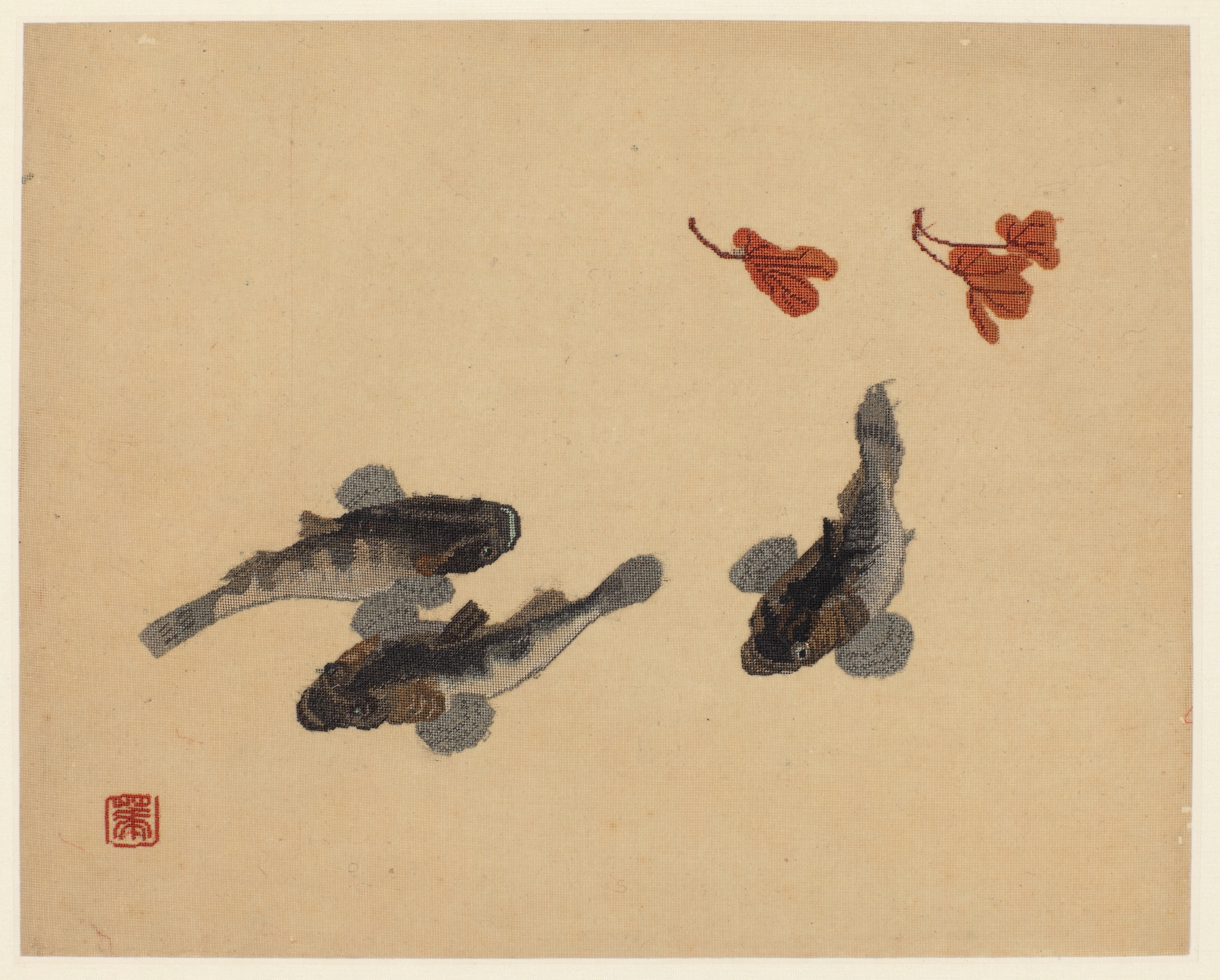 现代华慧贞锡绣《鱼乐图》镜片