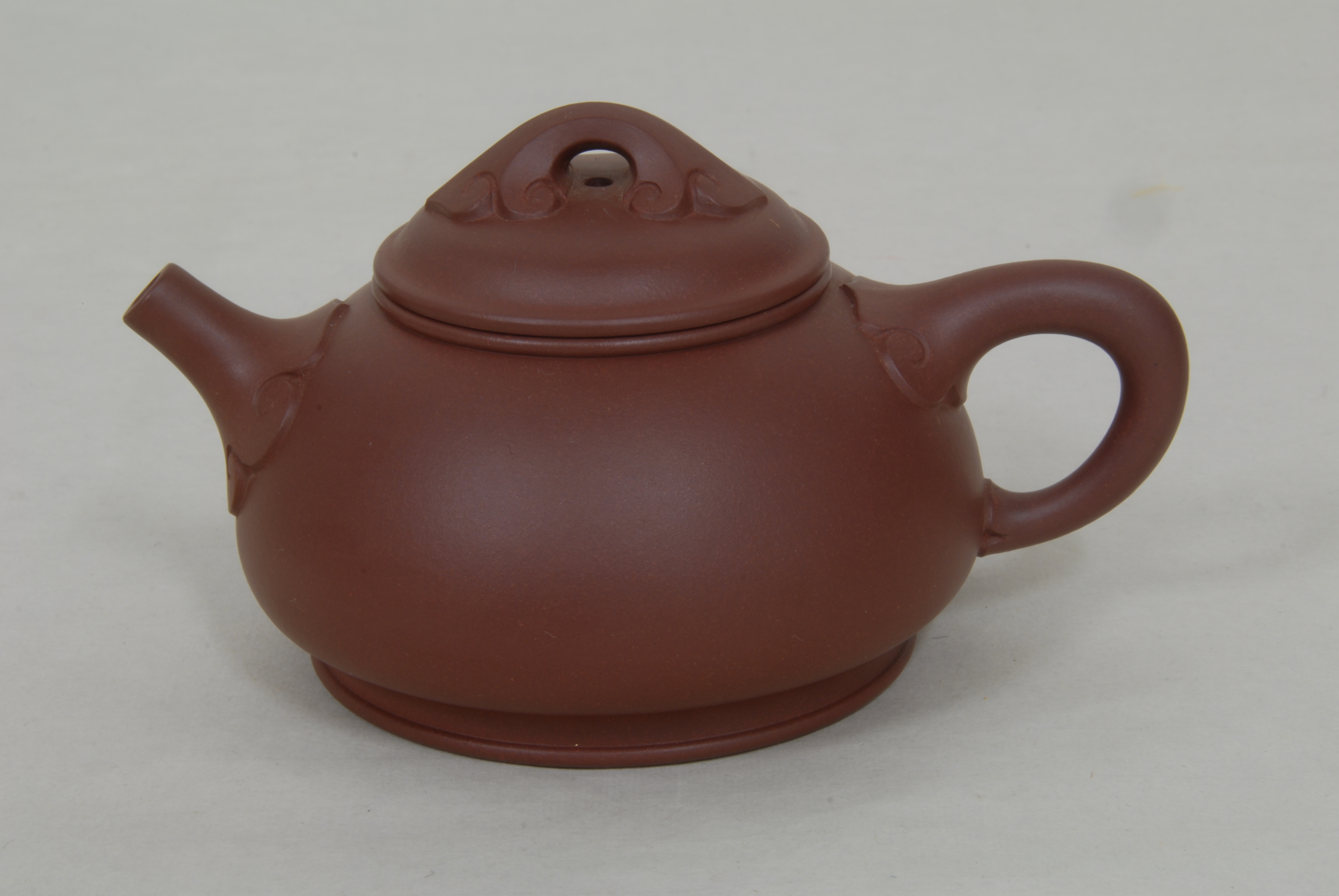 现代郑晓春制紫砂石瓢如意壶