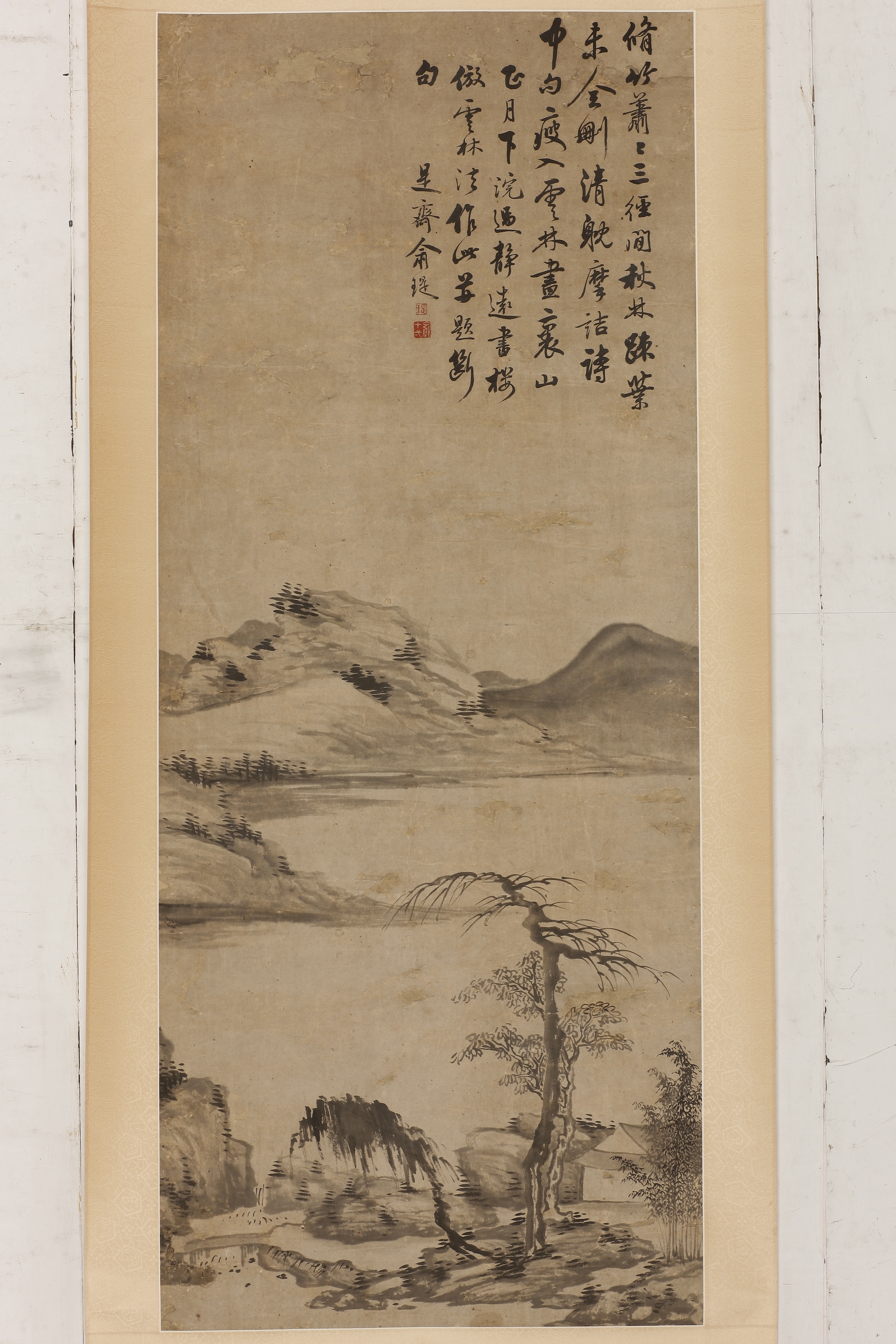 清俞瑅仿云林山水图轴
