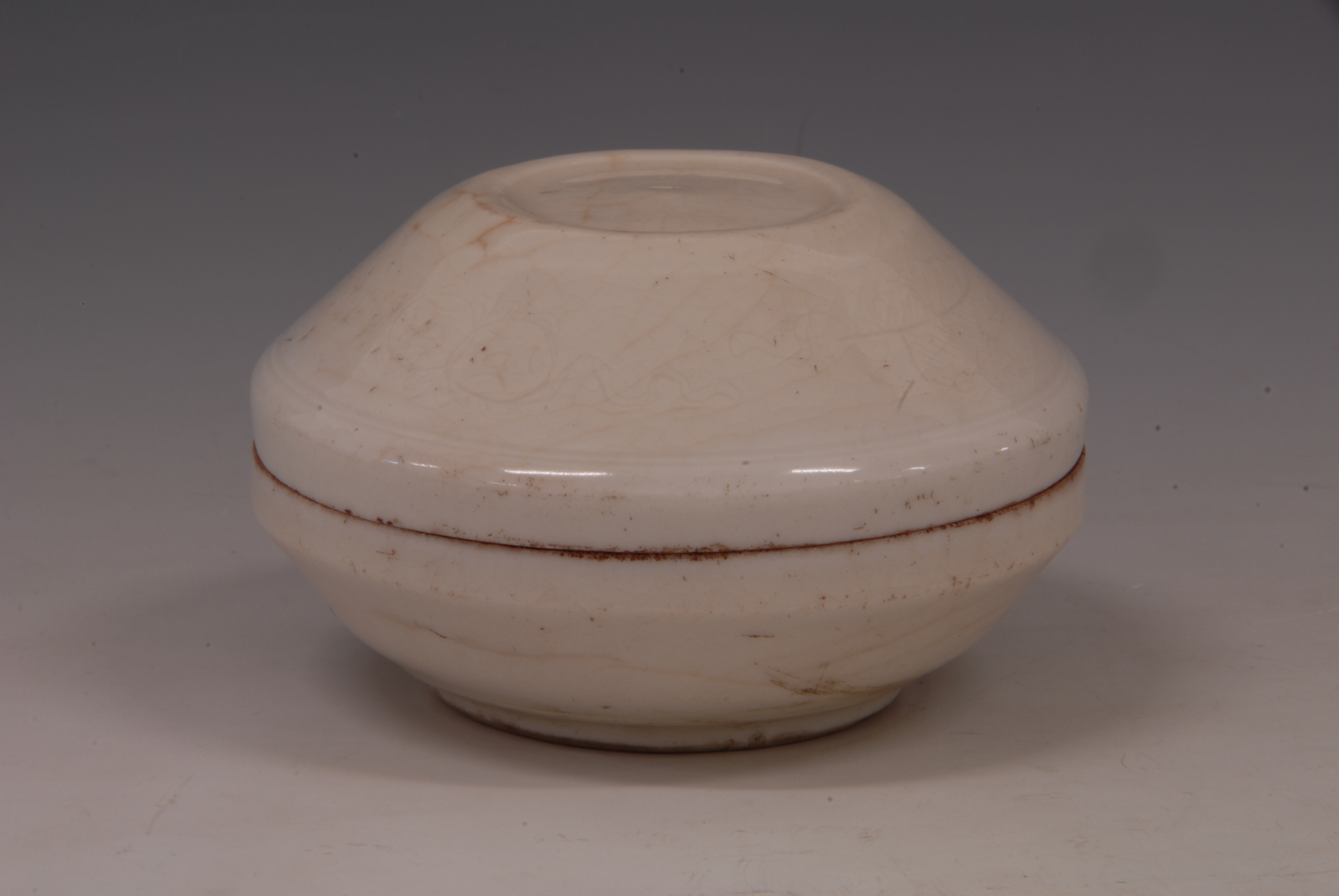 清白釉暗花瓷印盒