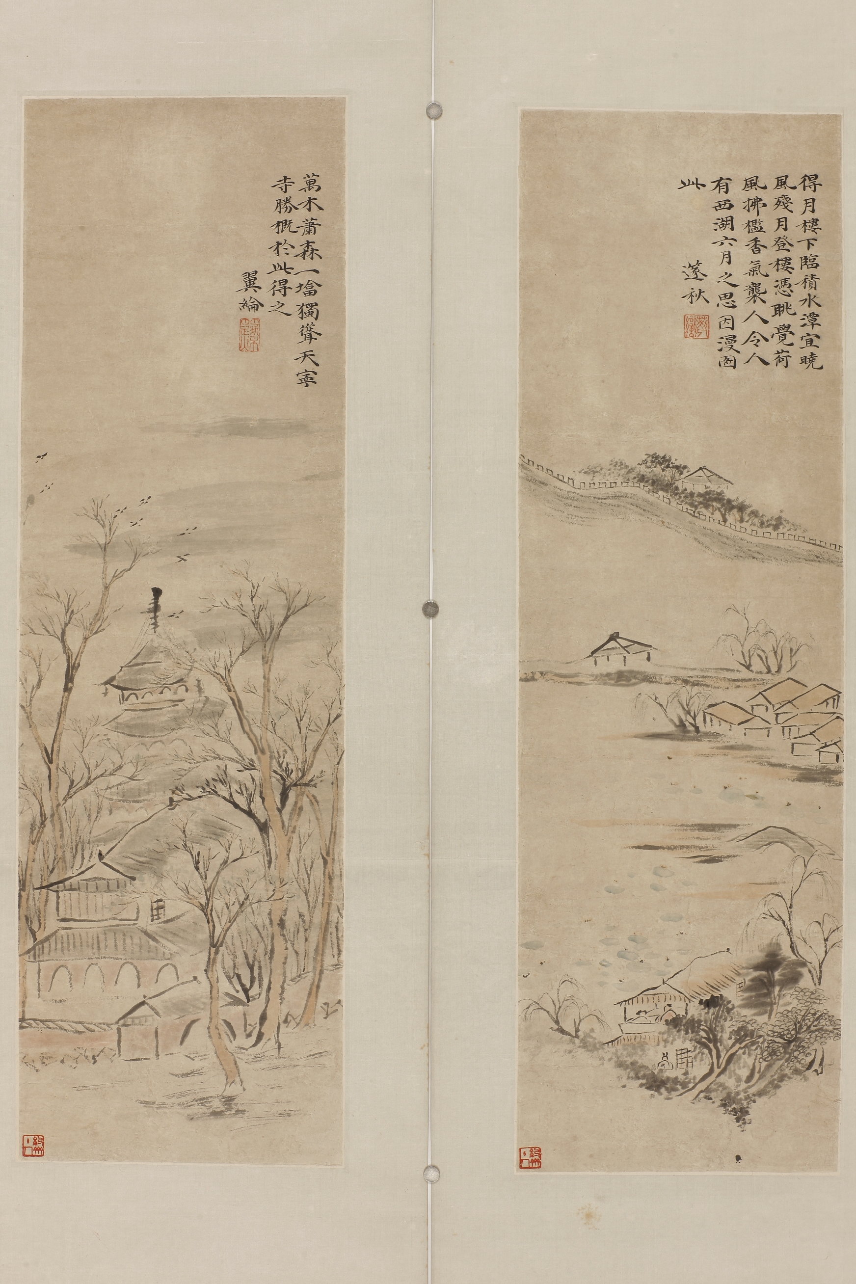 清华翼纶山水图四屏条