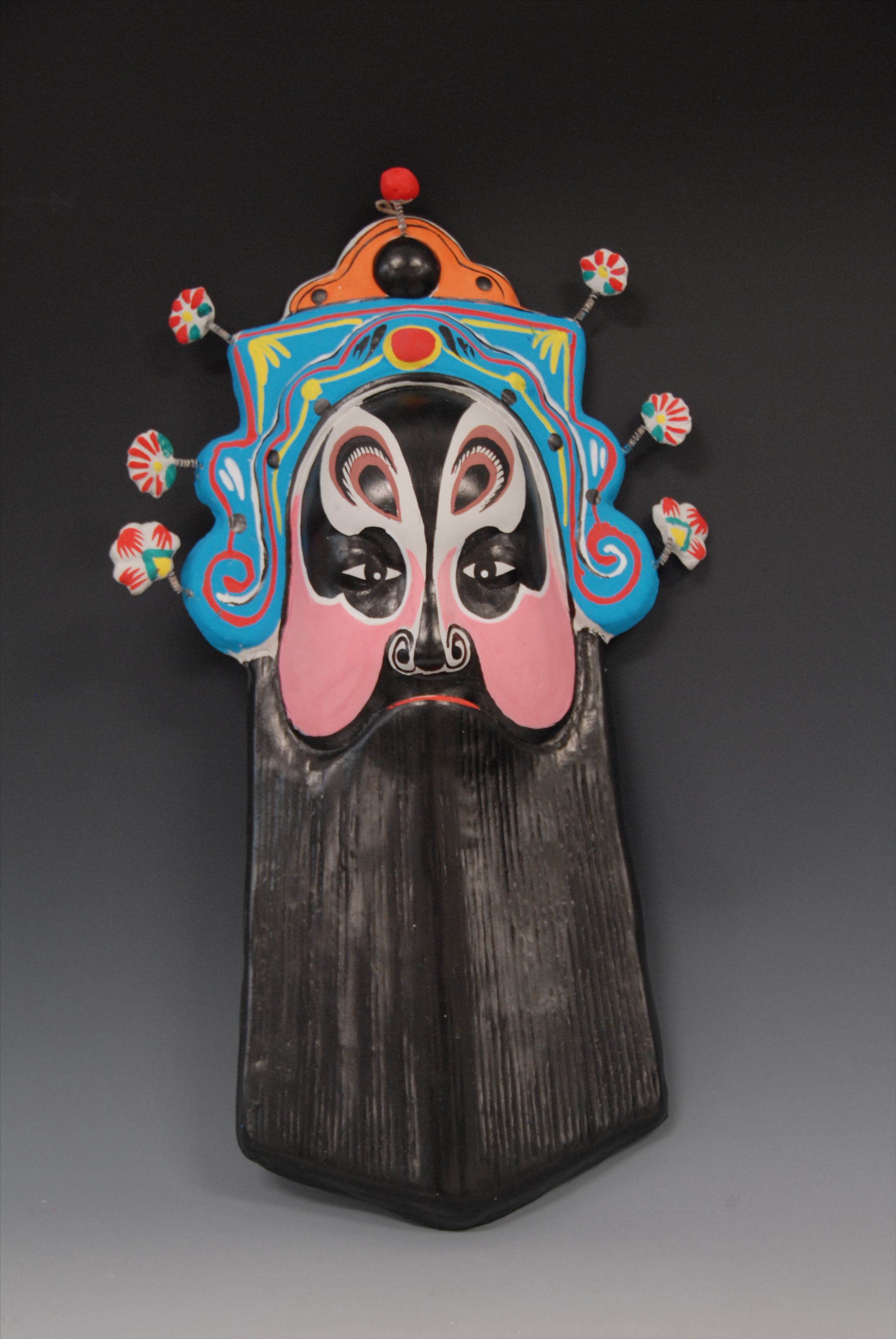 现代双起翔作彩绘泥塑脸谱