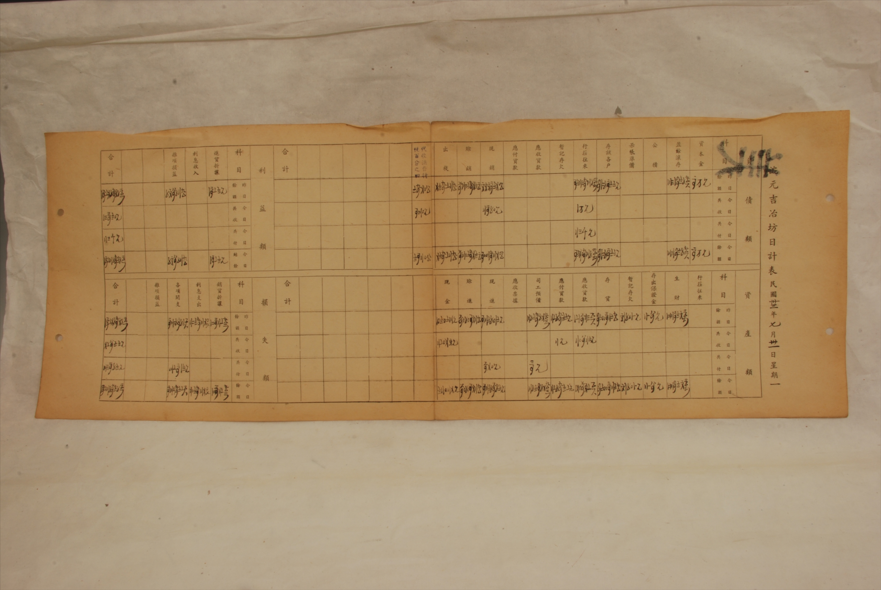 1944年7月31日沈元吉冶坊日计表