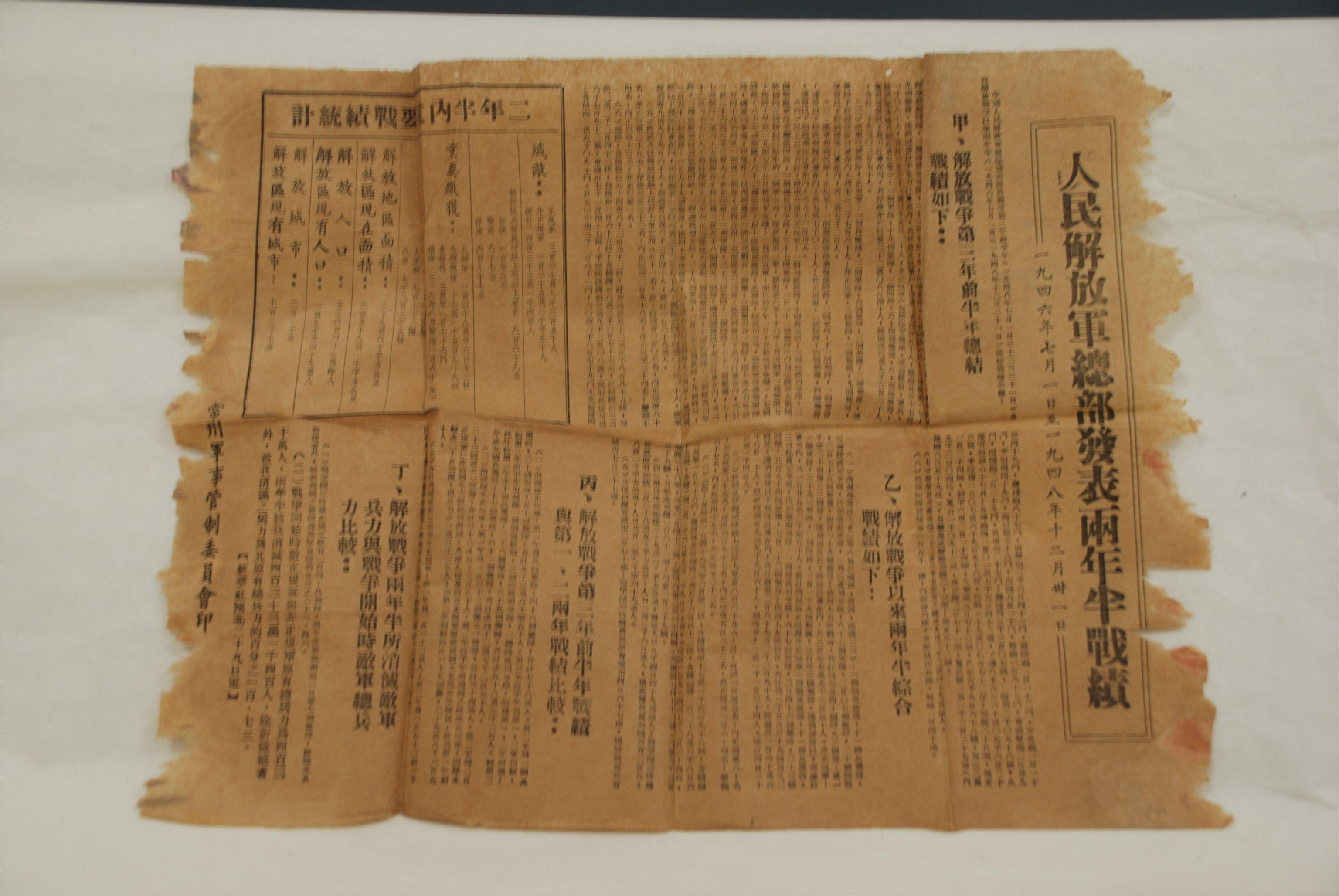 解放战争时期常州军事管制委员会印发的《人民解放军总部发表两年半战绩》