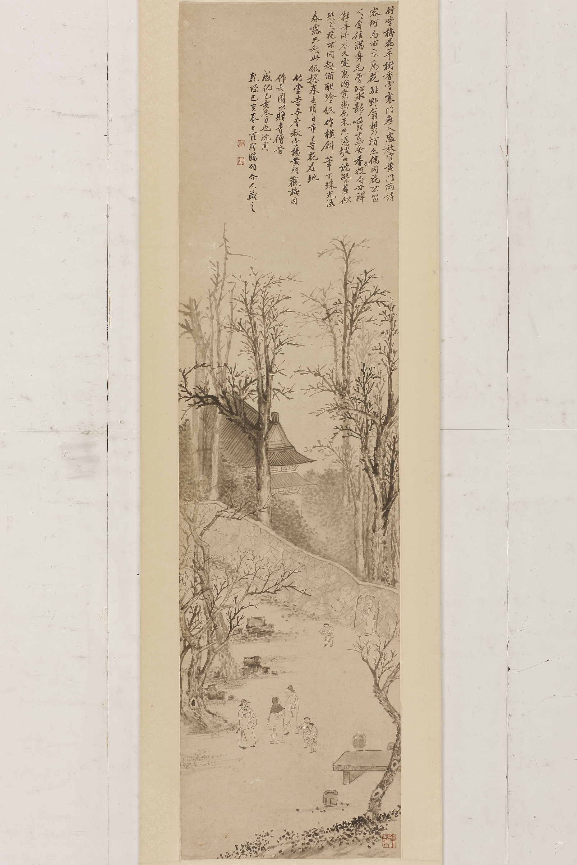 清罗聘临沈周竹堂寺观梅图轴