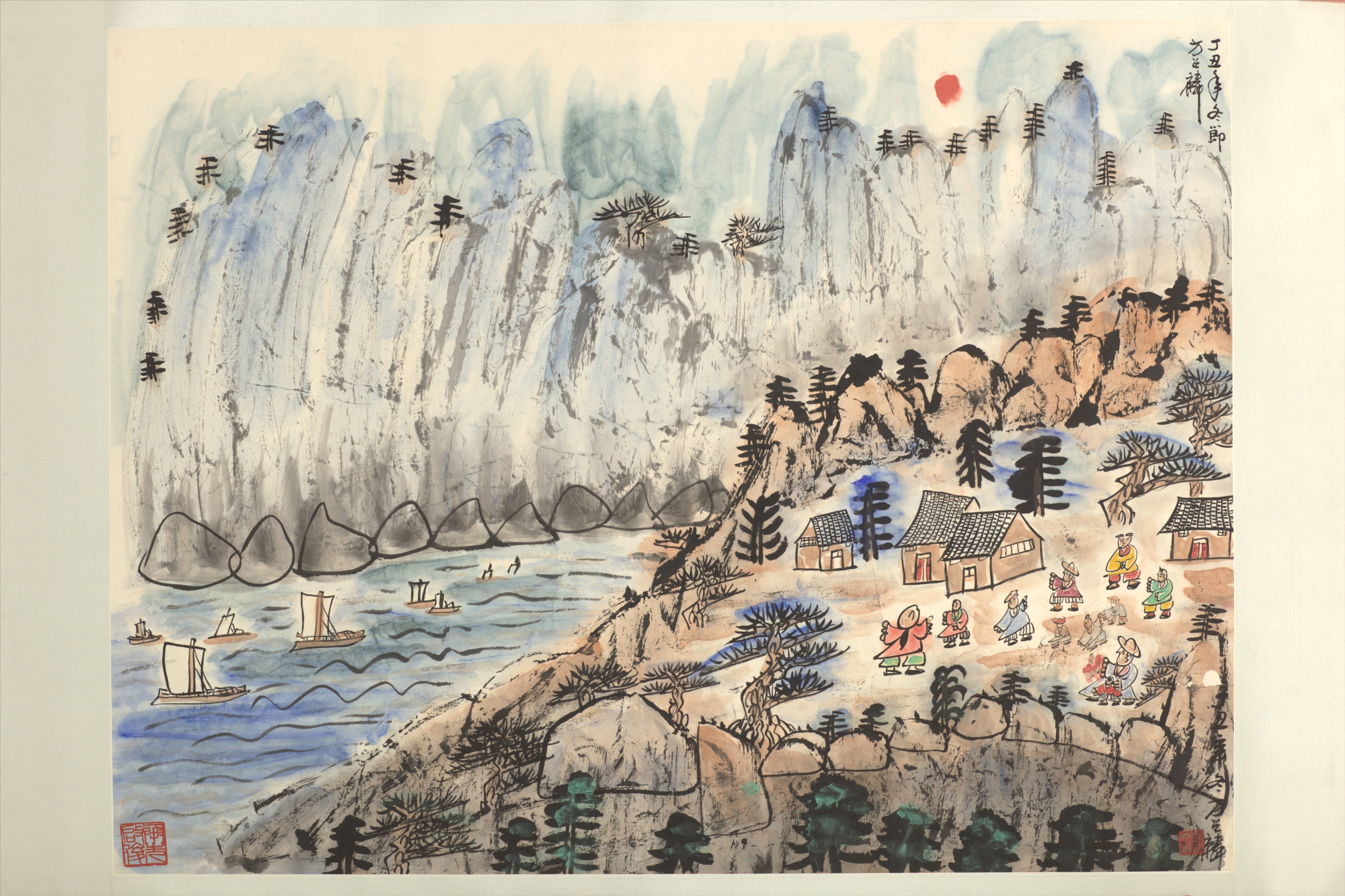 现代方召麟山水人物图镜片