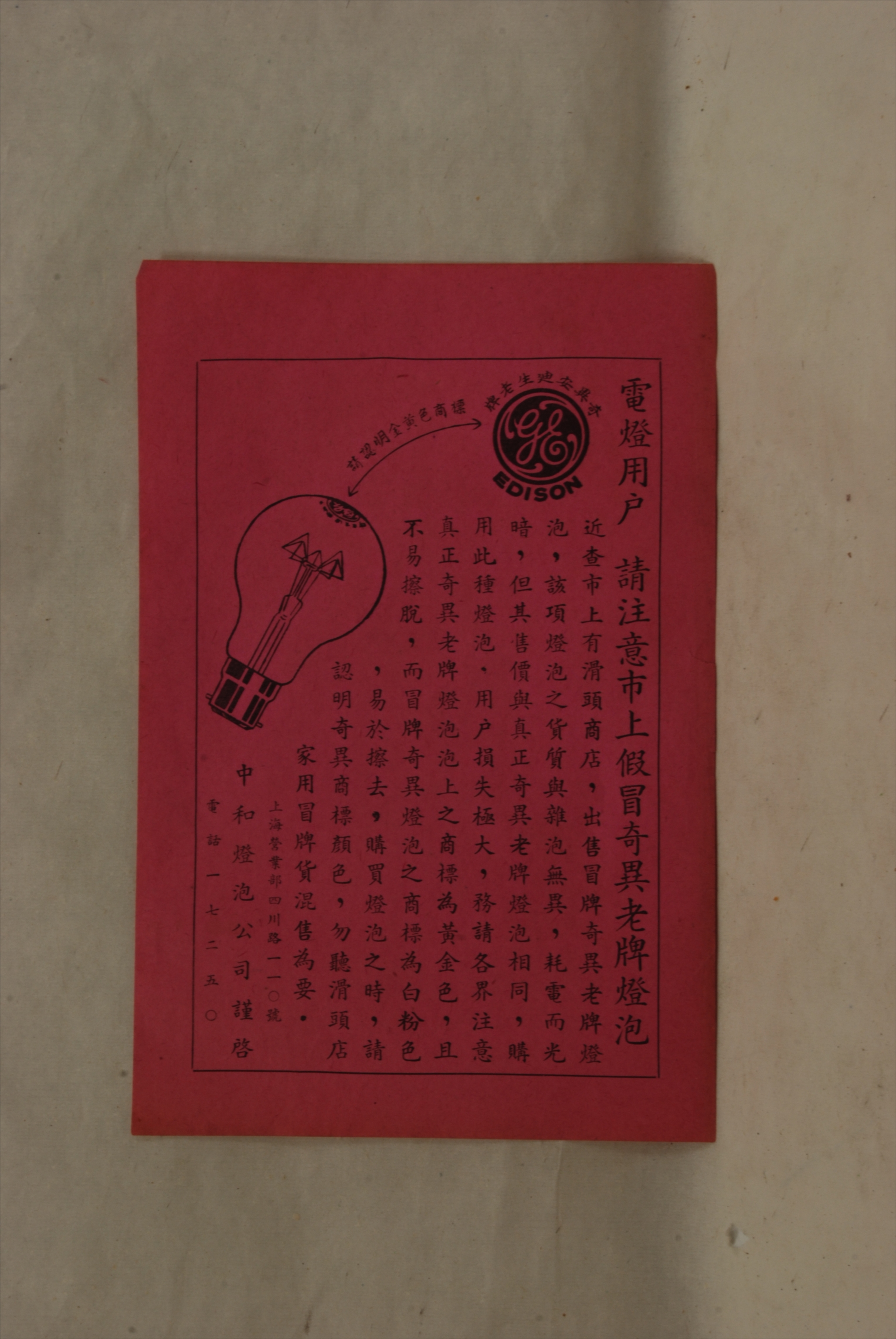 民国上海中和灯泡公司告示