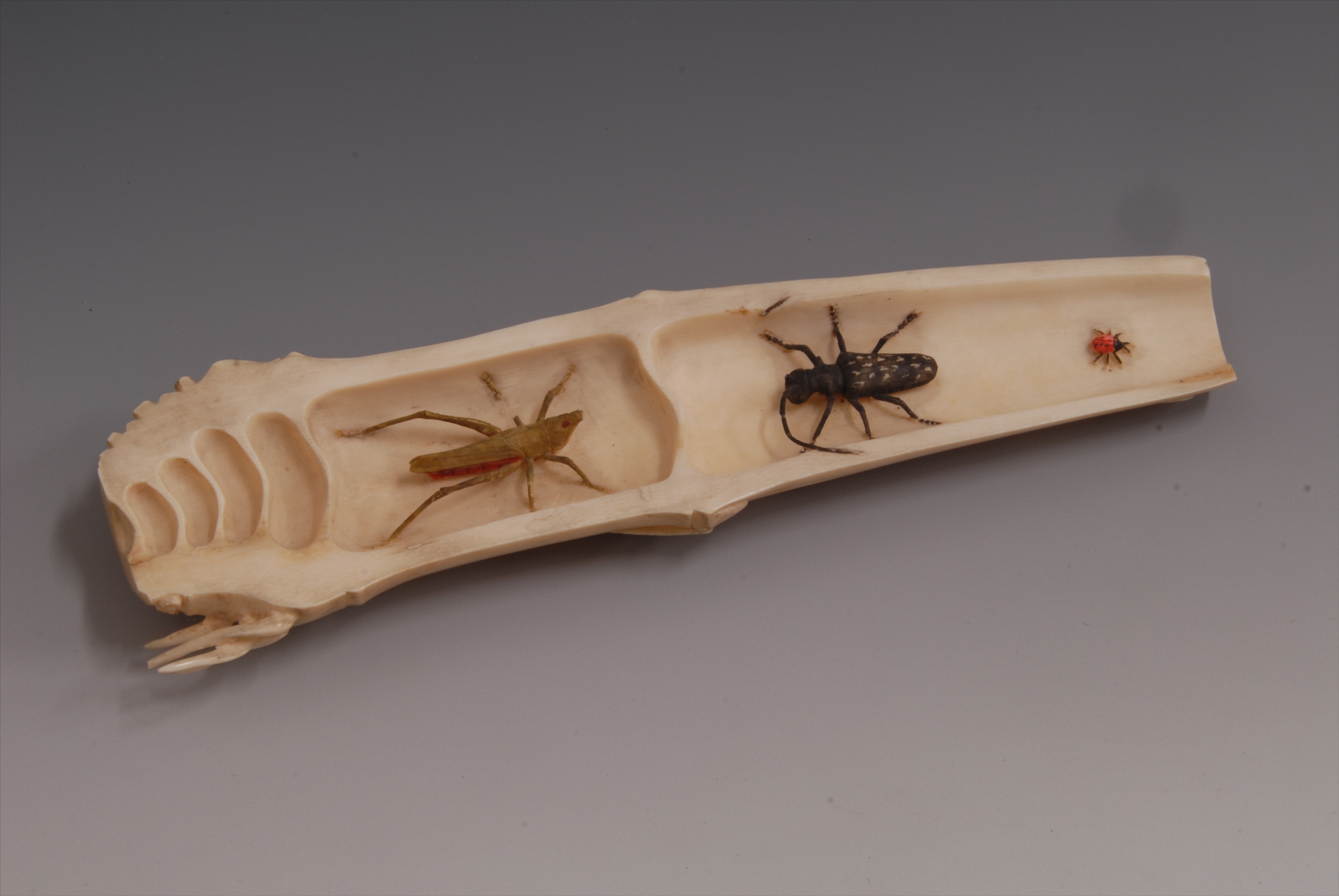 清乾隆象牙镂雕象生虫竹臂搁