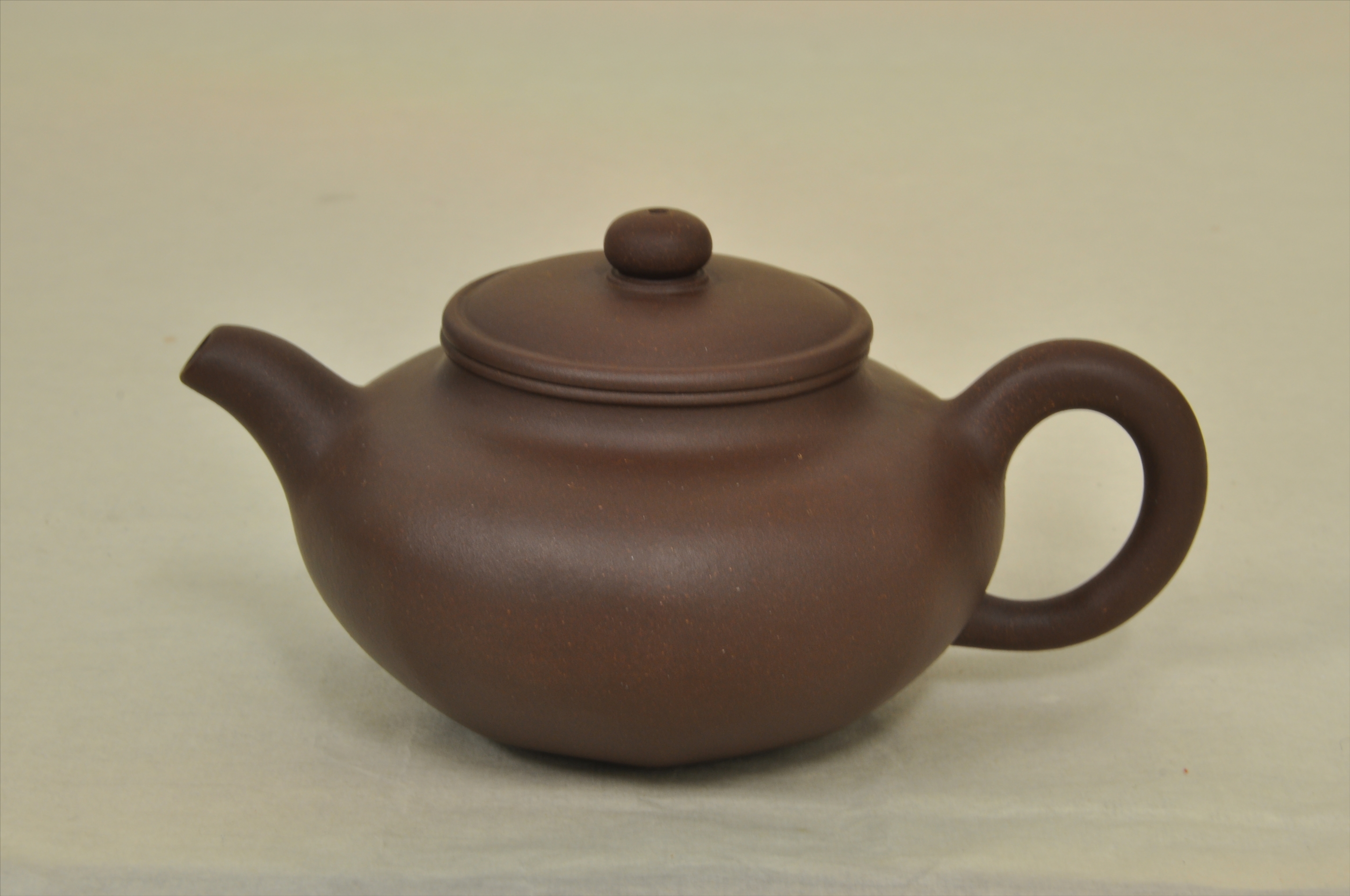 现代查良芬制紫砂圆六方壶