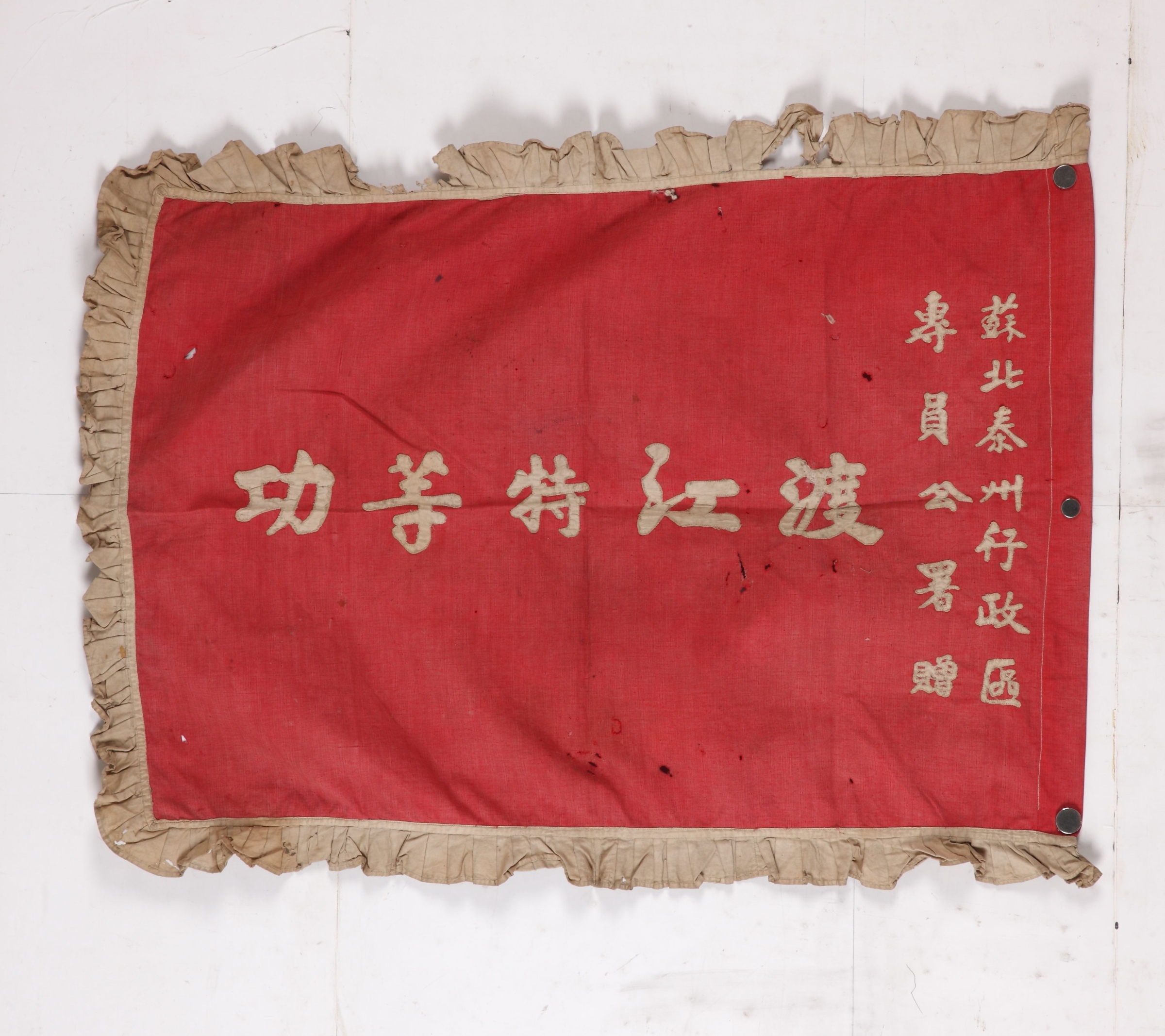 1949年苏北泰州行政区专员公署颁发给祈步清的“渡江特等功”锦旗