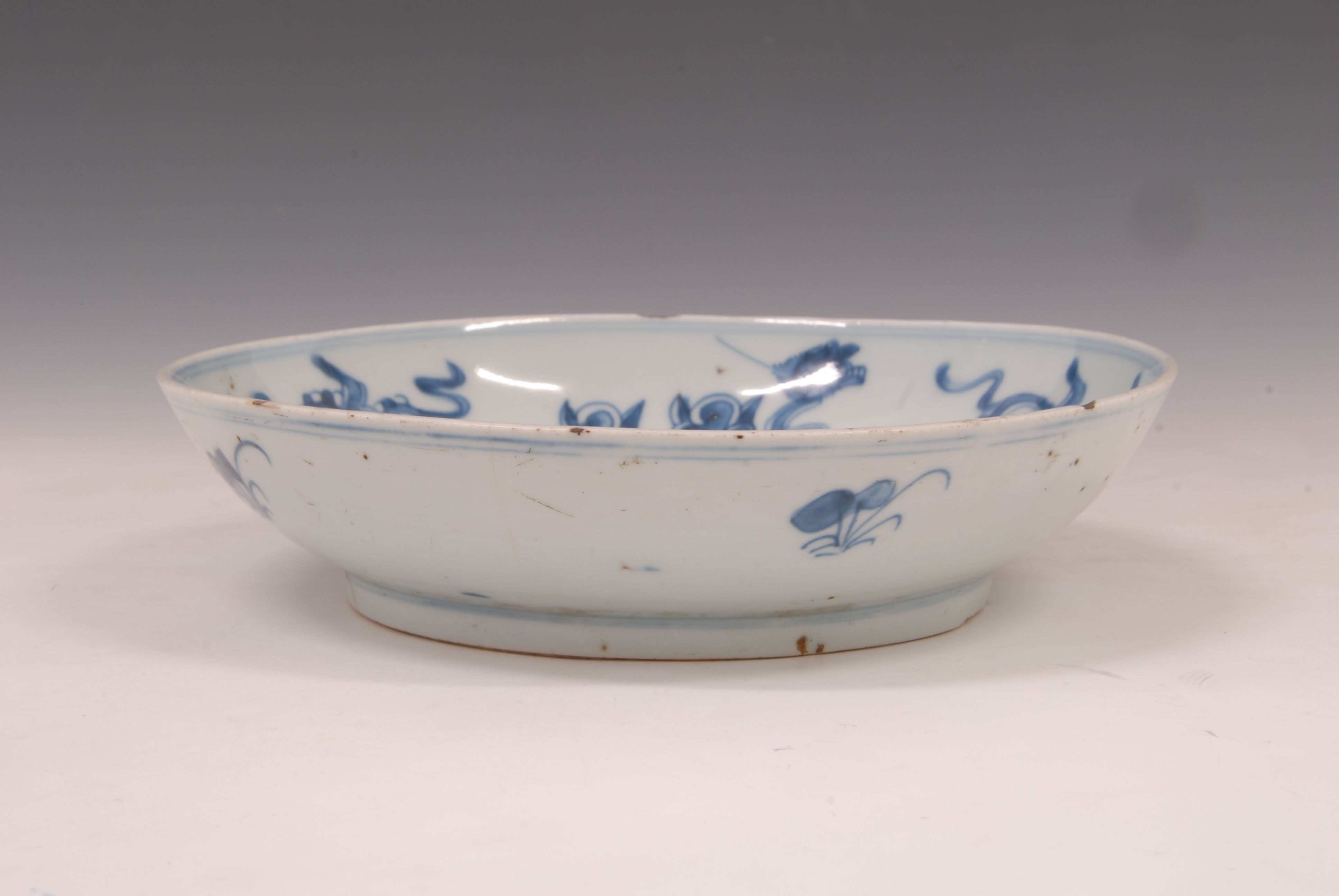 清青花夔龙纹瓷盘
