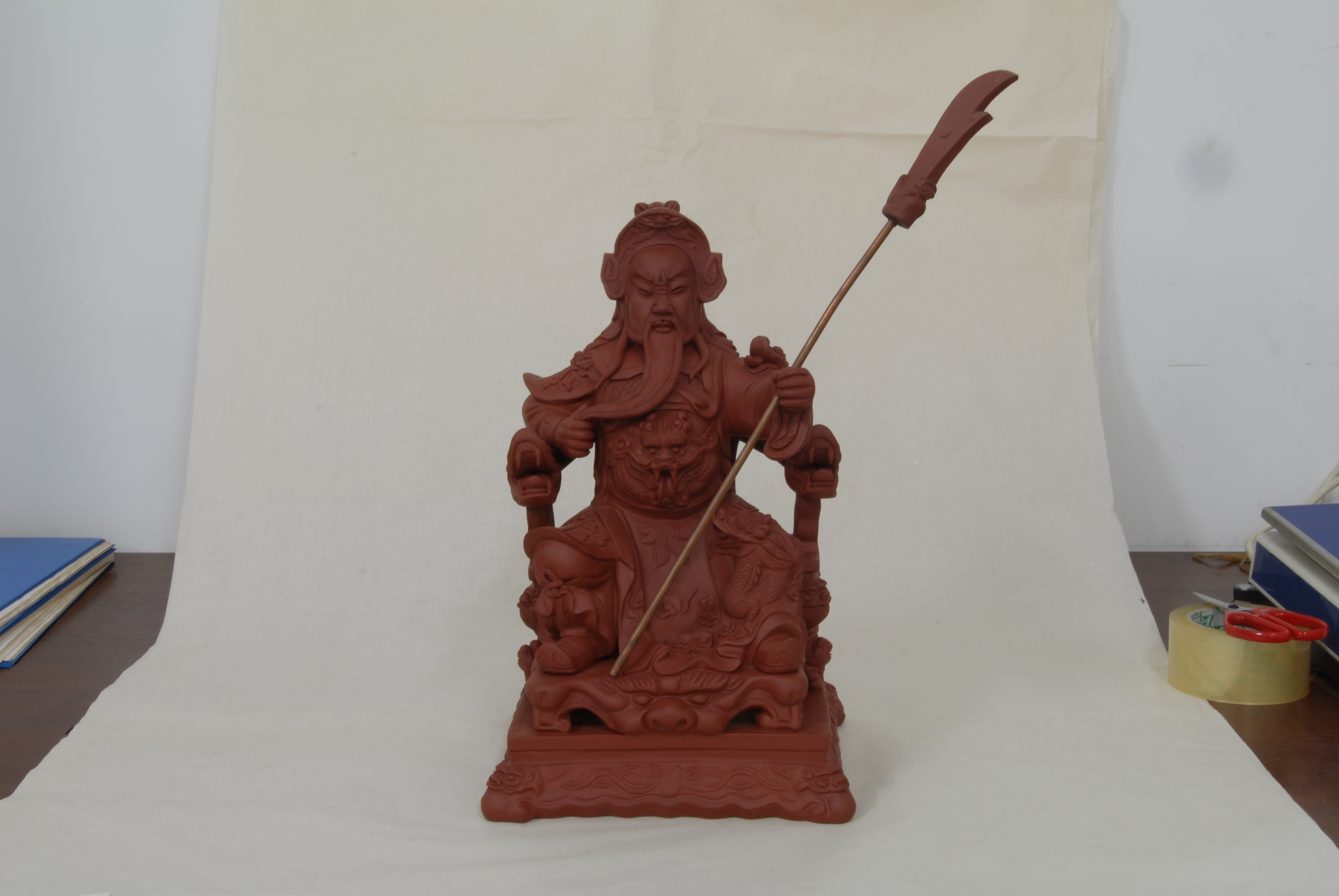 现代陈春生制紫砂“龙椅关公”雕塑