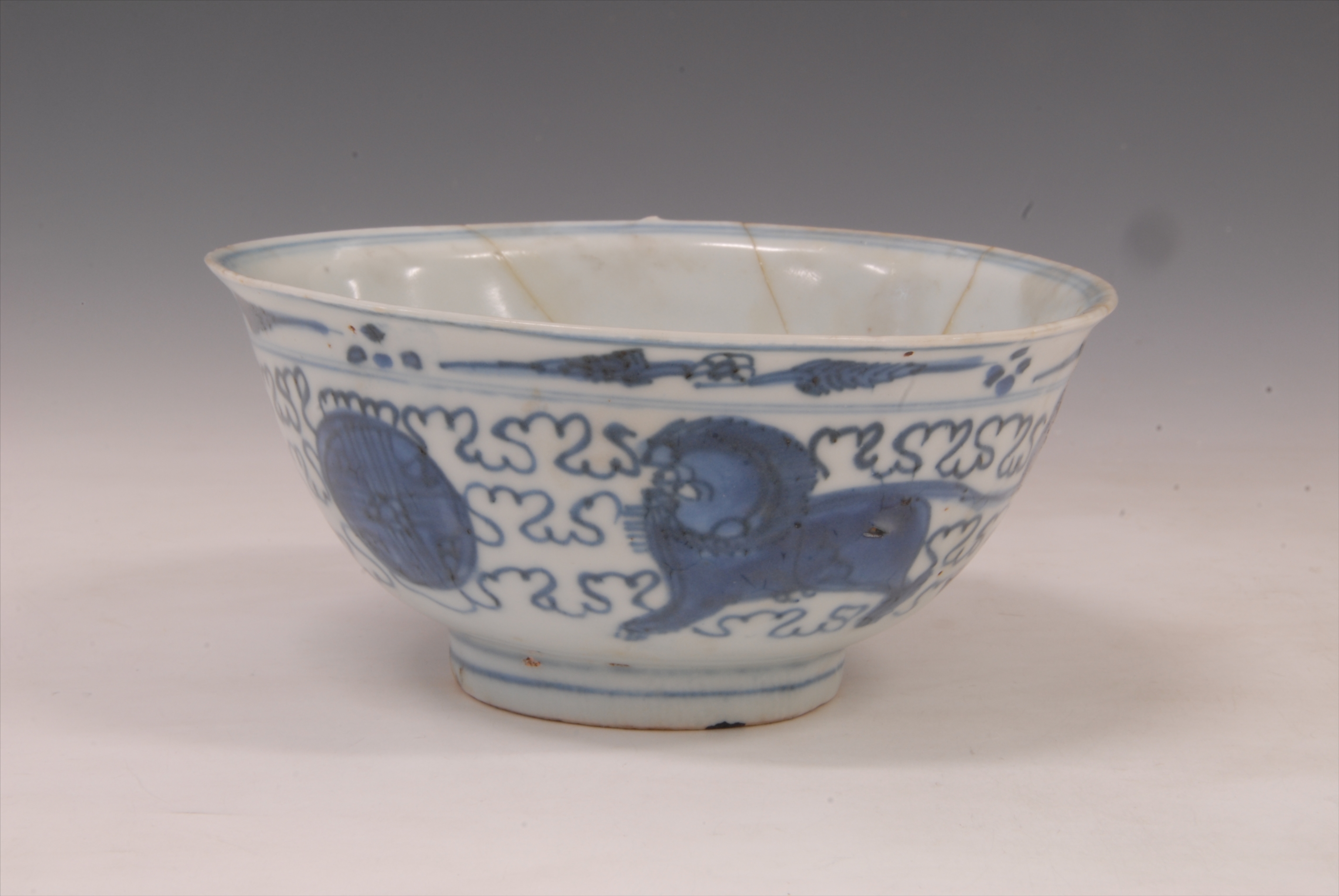 明青花双狮戏球纹瓷碗