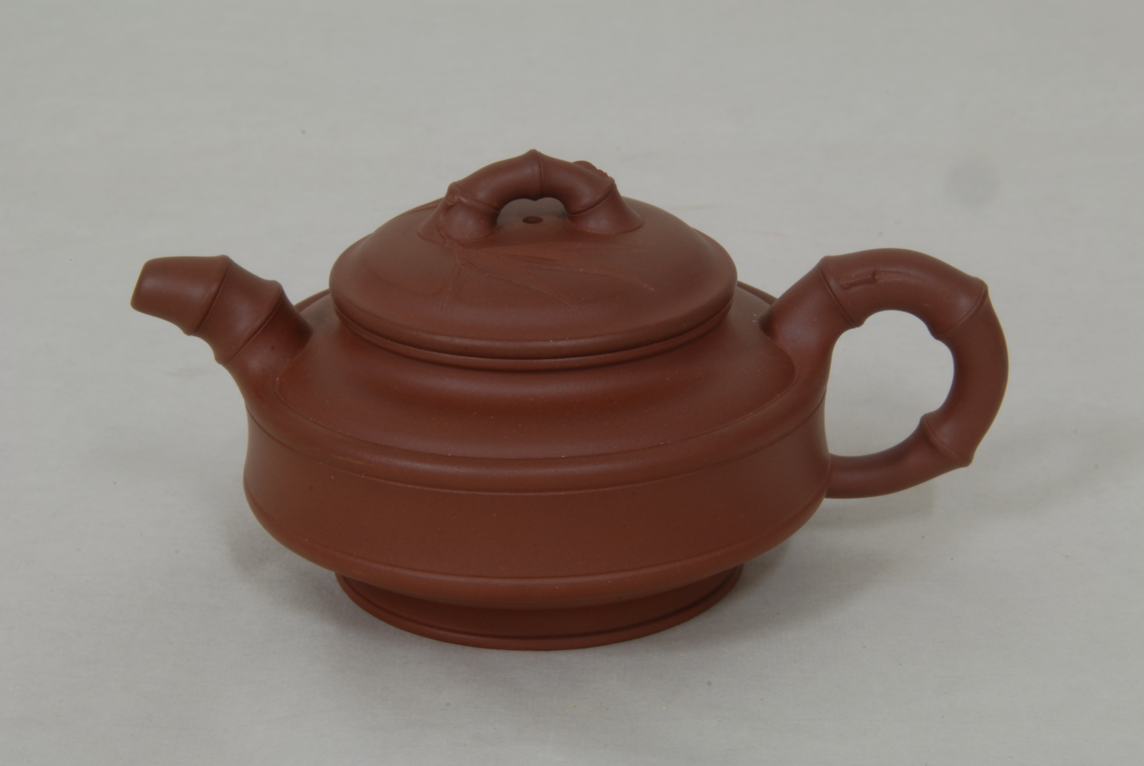 现代陈洪华制紫砂双线竹鼓壶