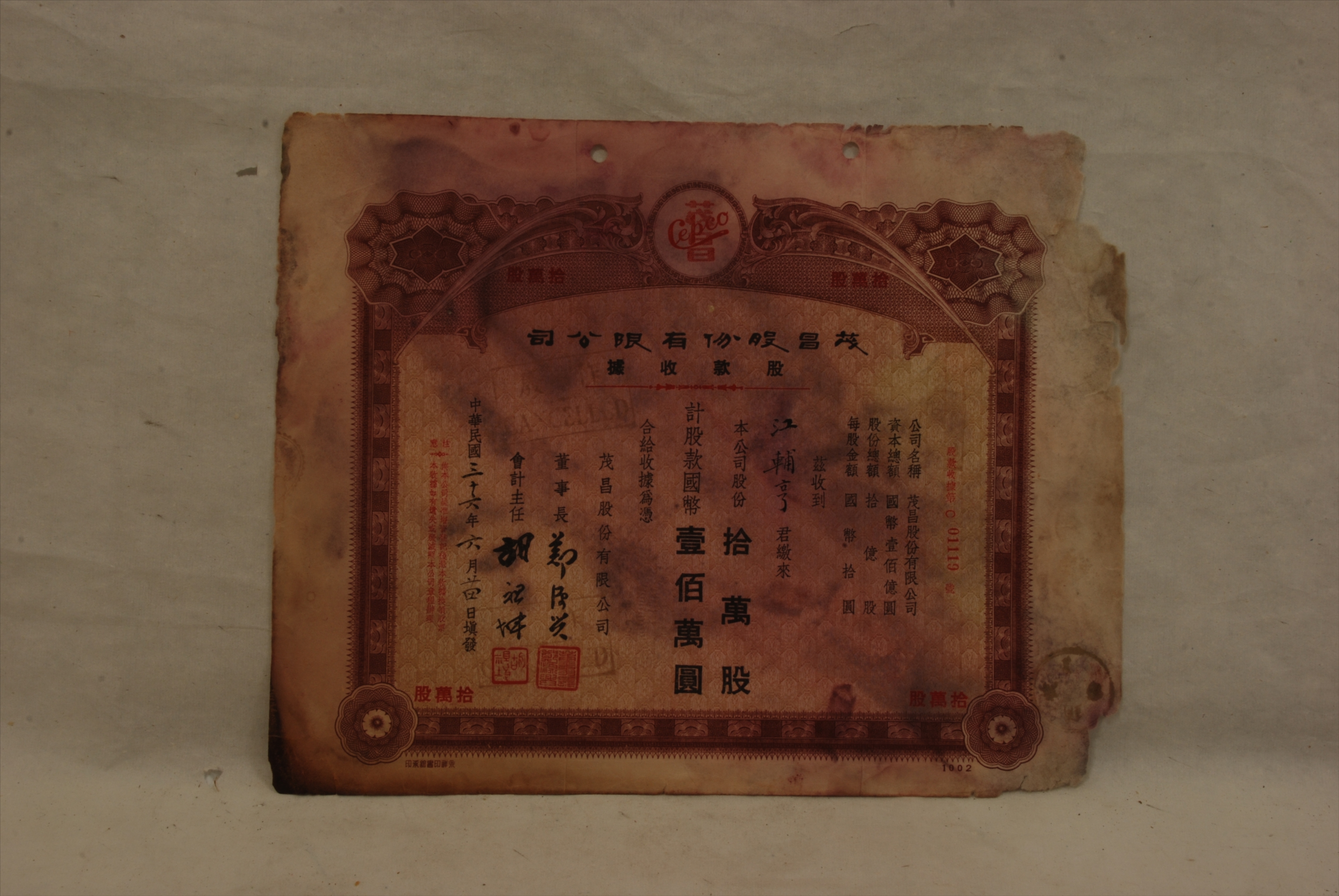 1947年6月24日茂昌股份有限公司出具给江辅亨的股款收据