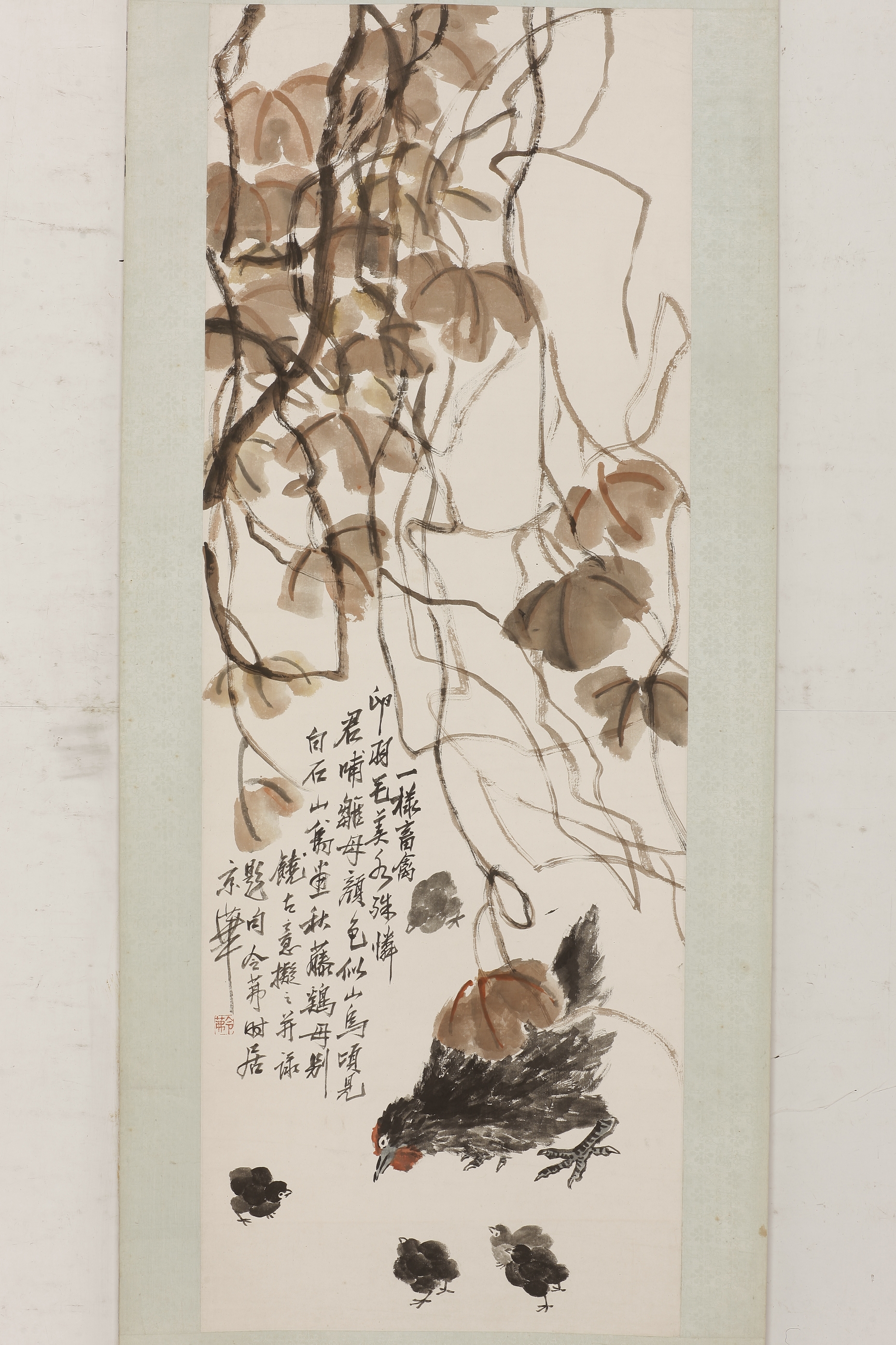 近代杨令茀拟白石秋藤鸡母图轴