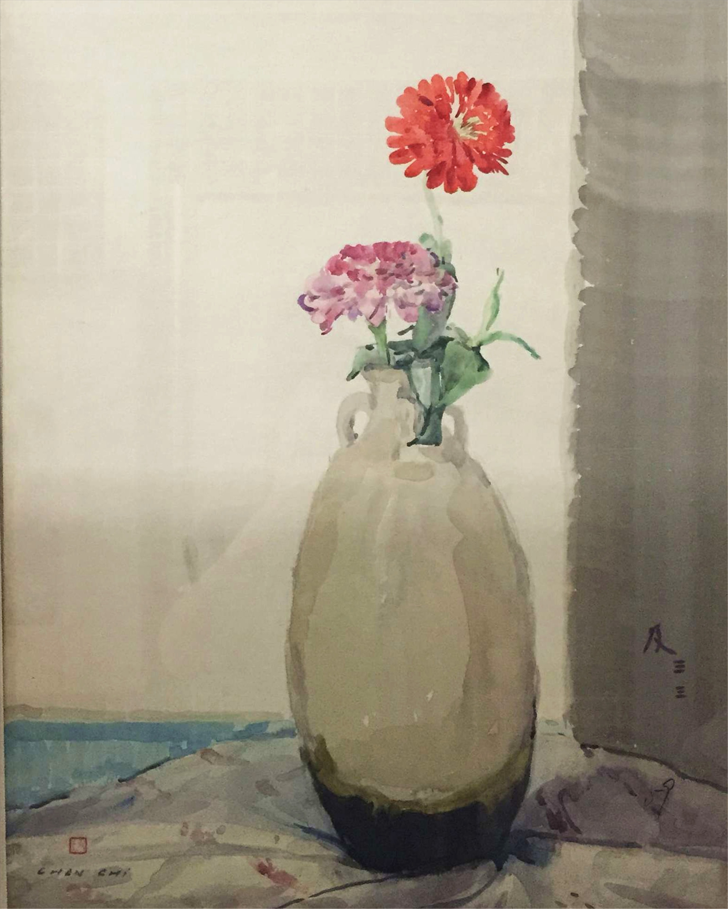 现代程及花在宋代古瓶中镜框