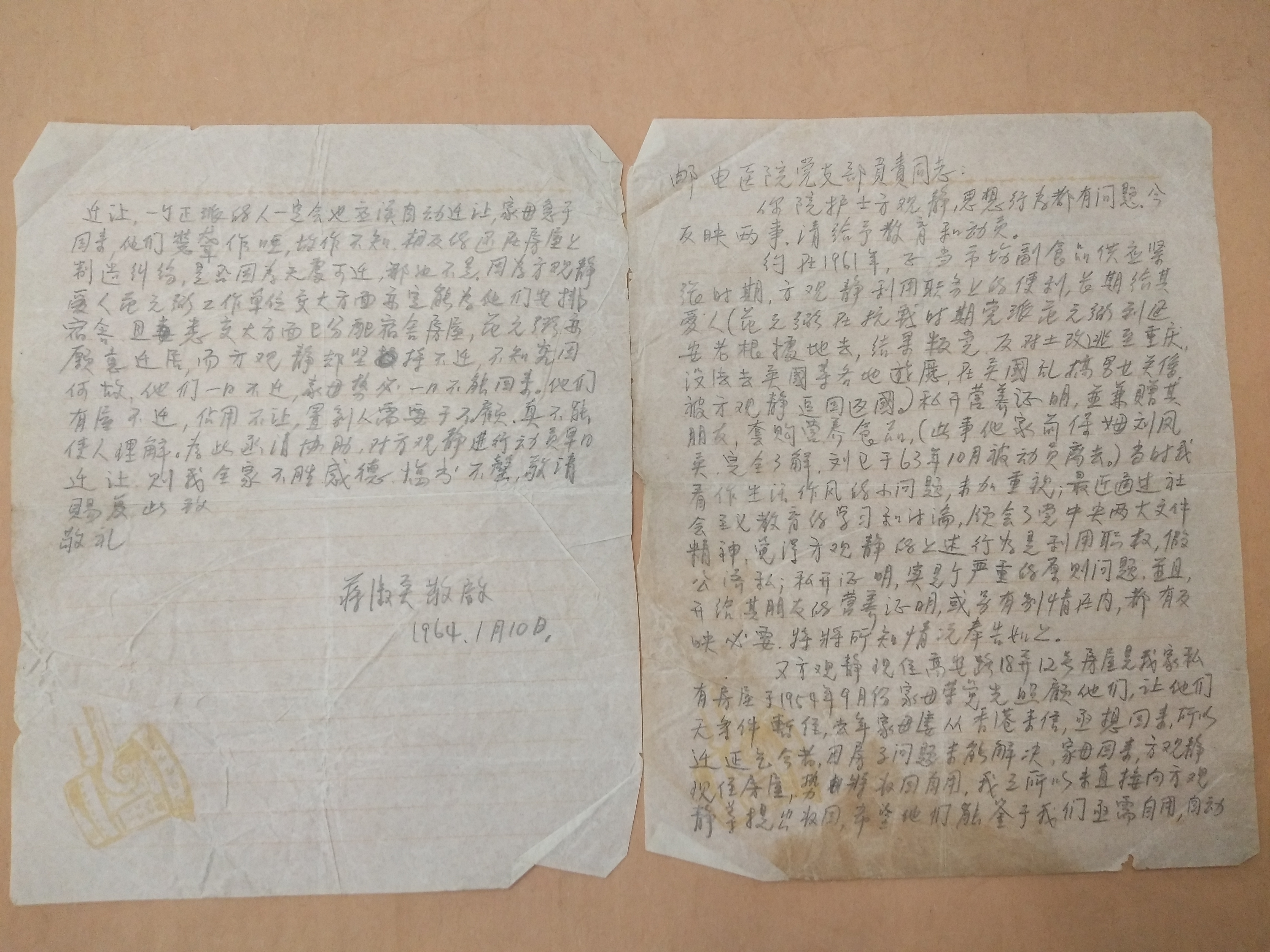 1964年1月10日蒋淑英致邮电医院党支部的信札