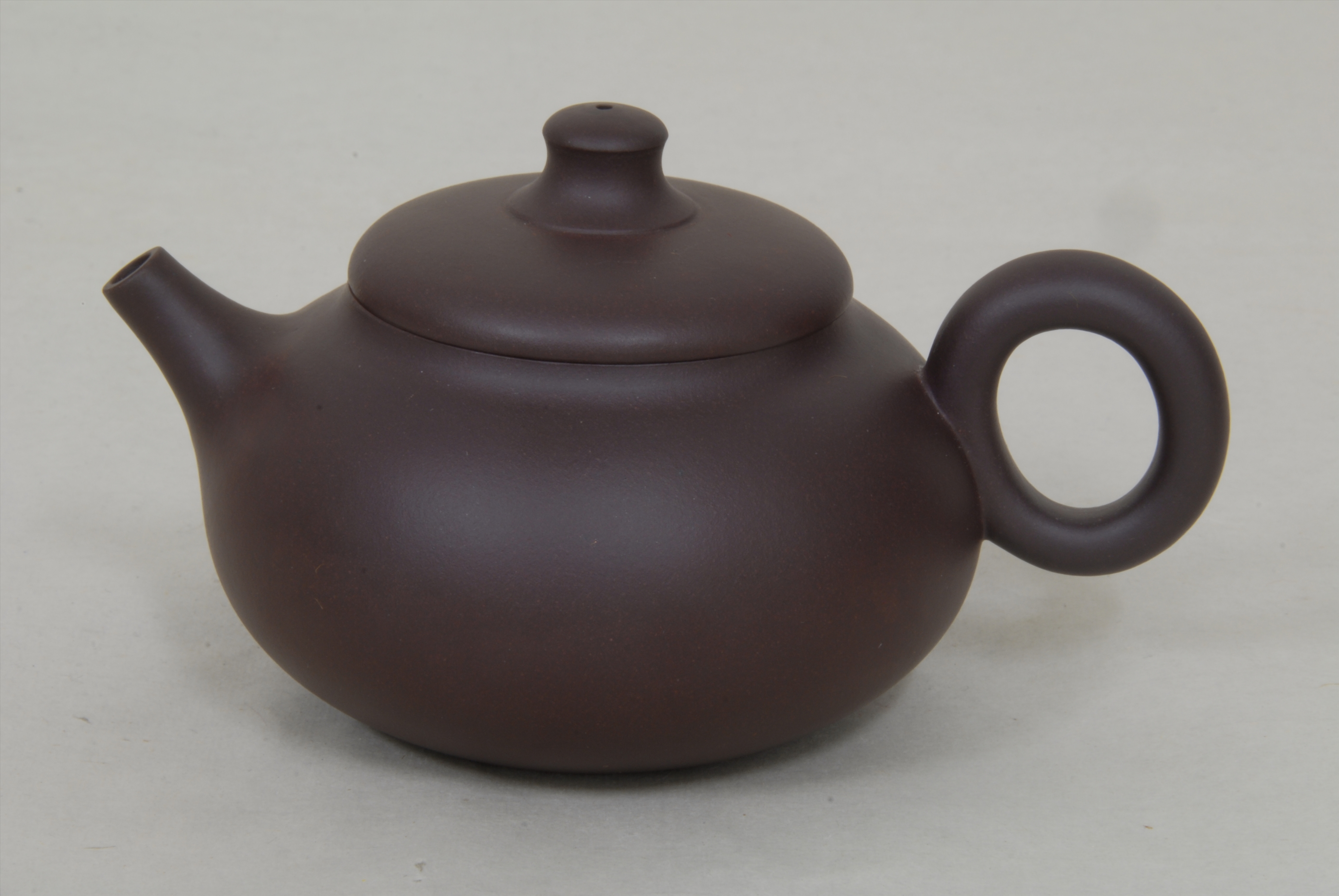 现代鲍明亚制紫砂圆把玉笠壶