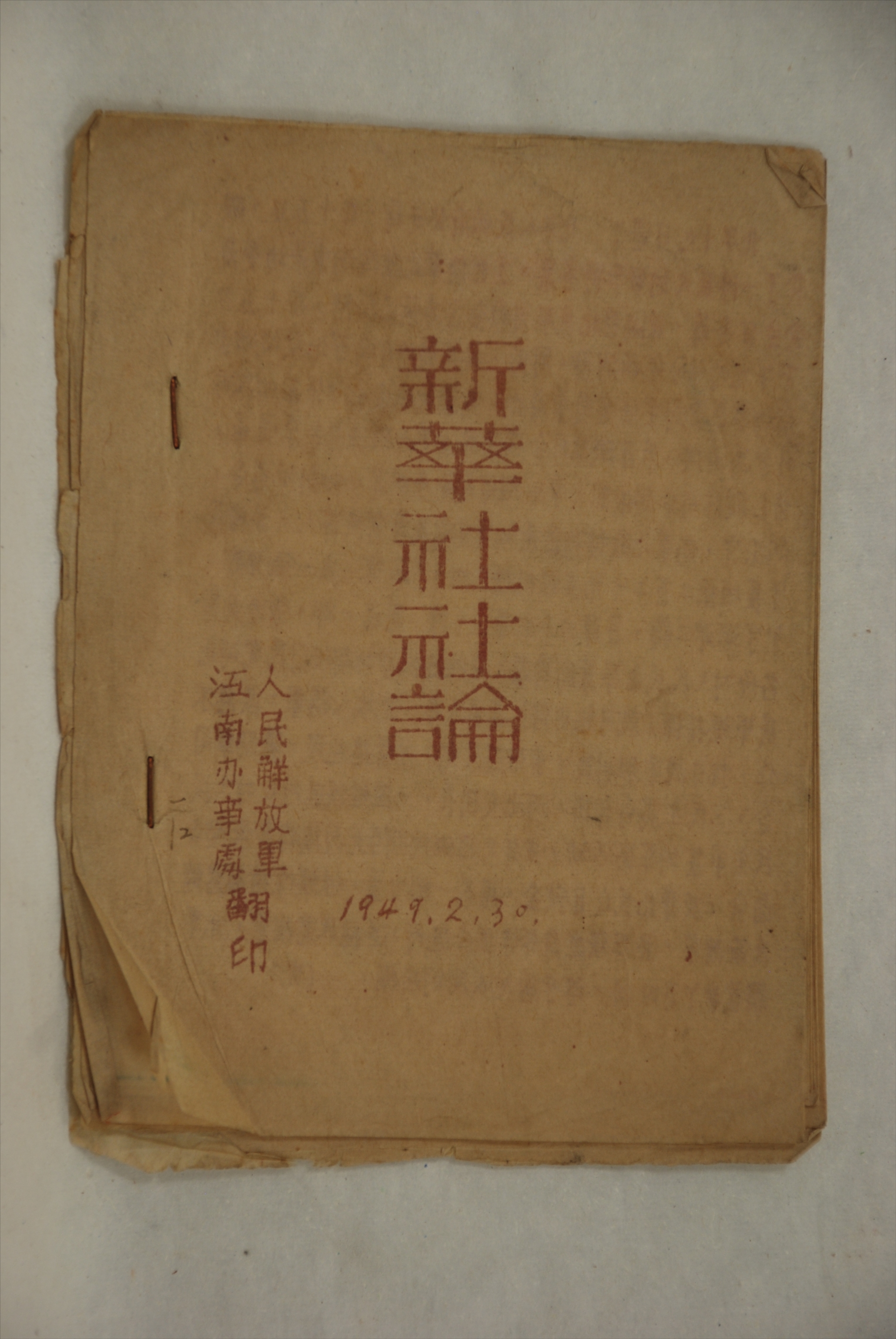 1949年2月30日人民解放军江南办事处翻印的《新华社社论》