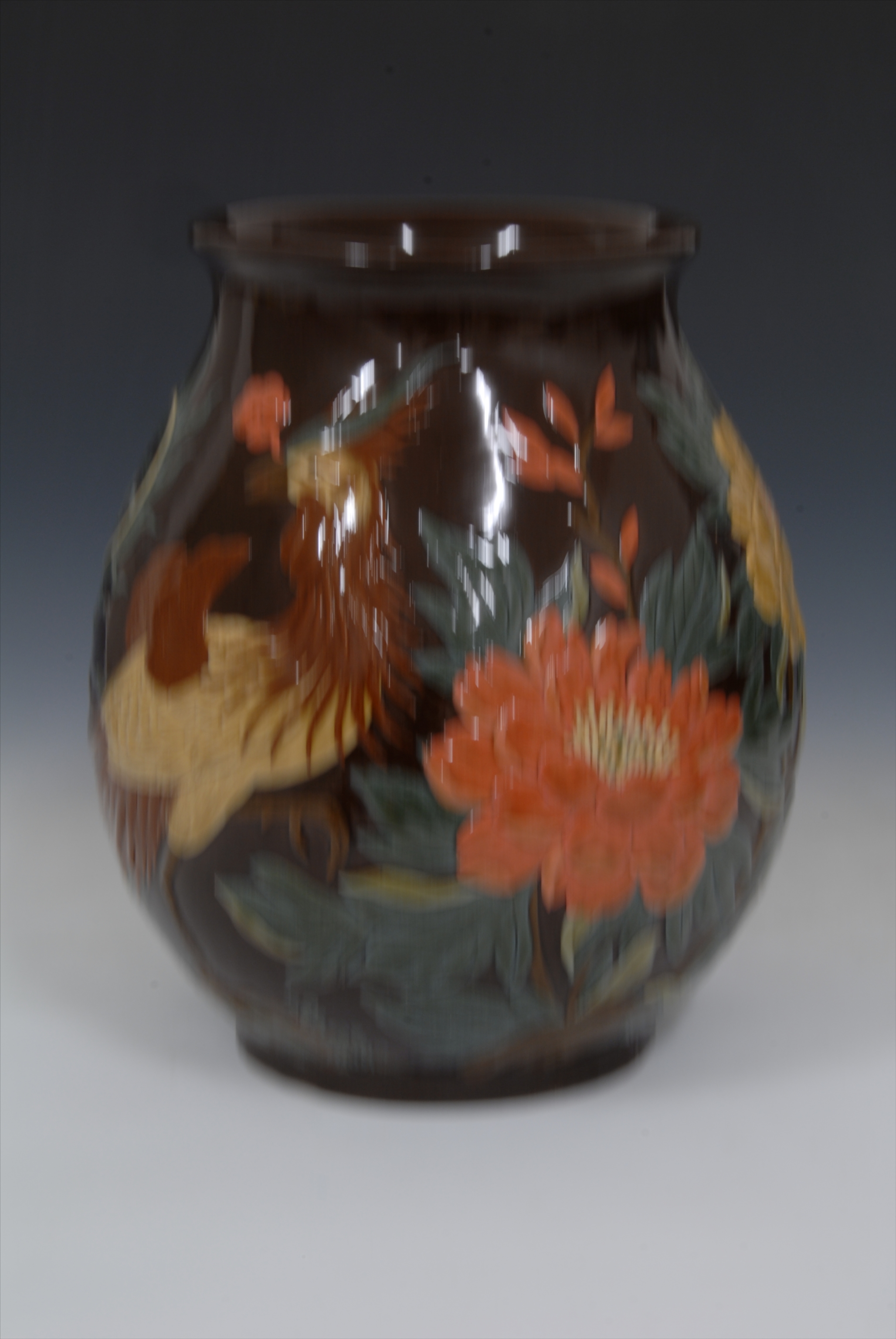 现代凤喜牡丹纹钧釉陶瓶